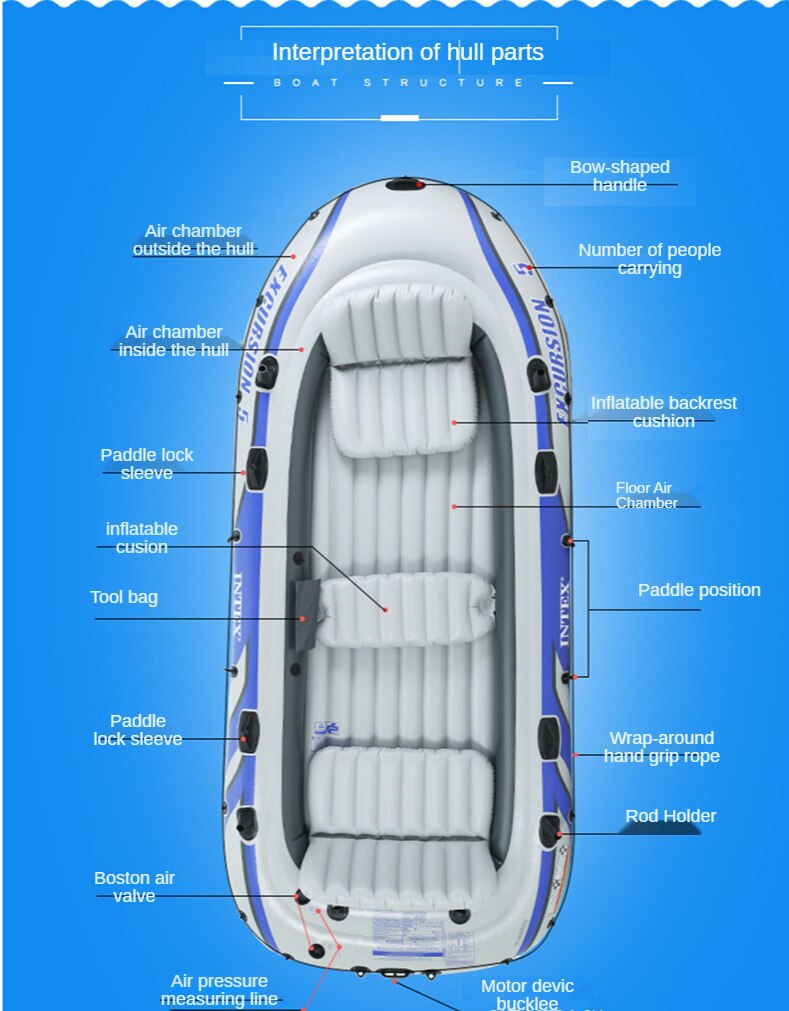 INTEX Excursion 4/5 Thickened 4-5 person Inflatable Boat Fishing Boat Raft Boat Rubber WidenCastaway