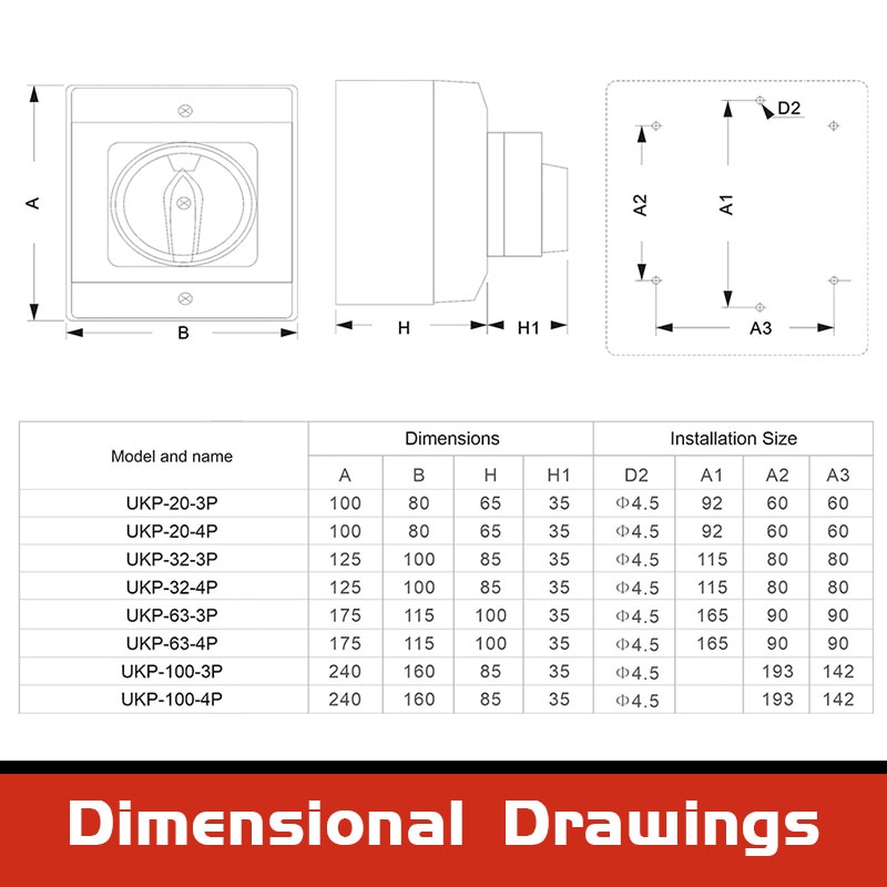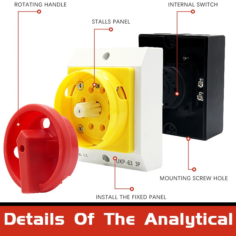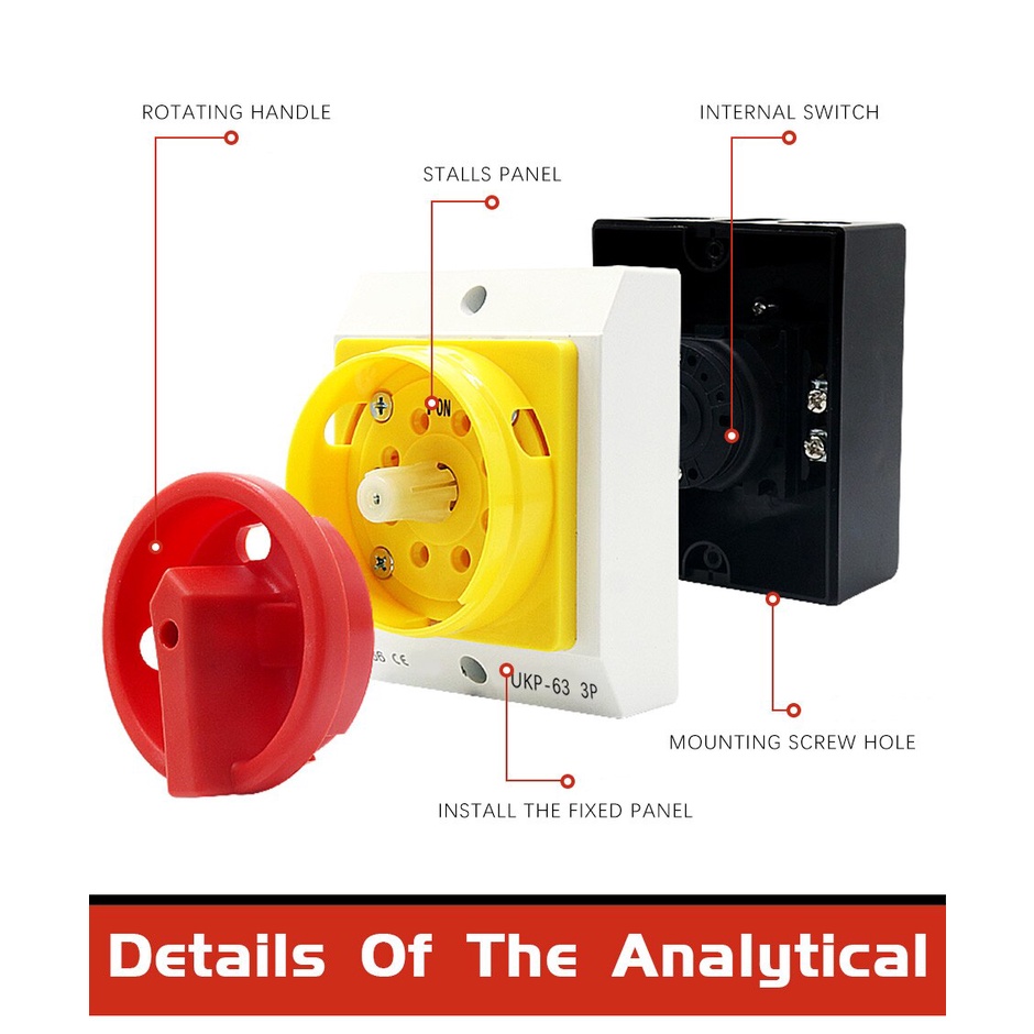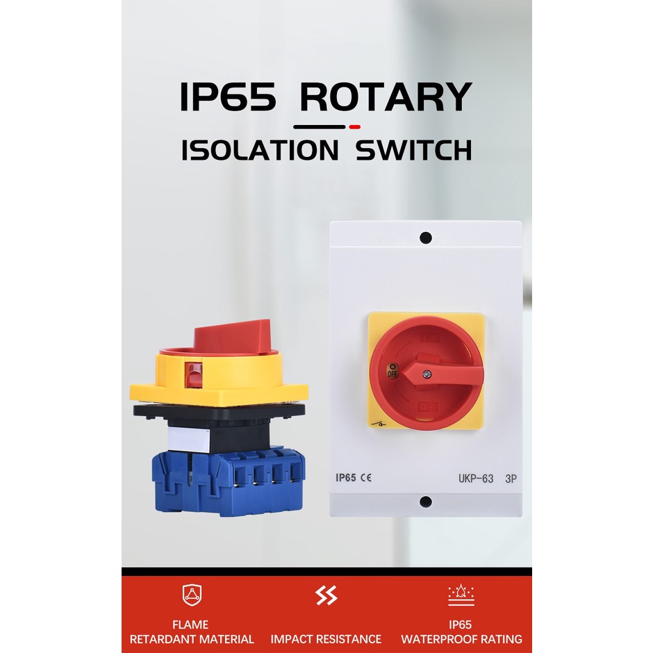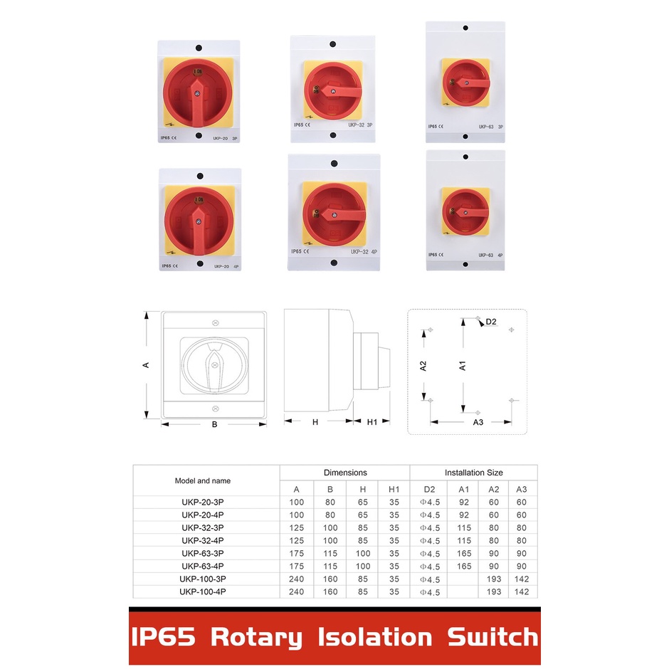 IP65 Padlock Rotary Isolator Cam Switch 20A OFF-ON 0-1 4 Poles 8 Terminals Disconnect Switch Rear Installation 80A 100A