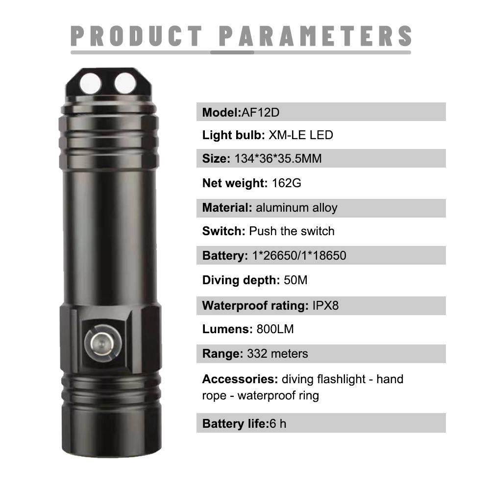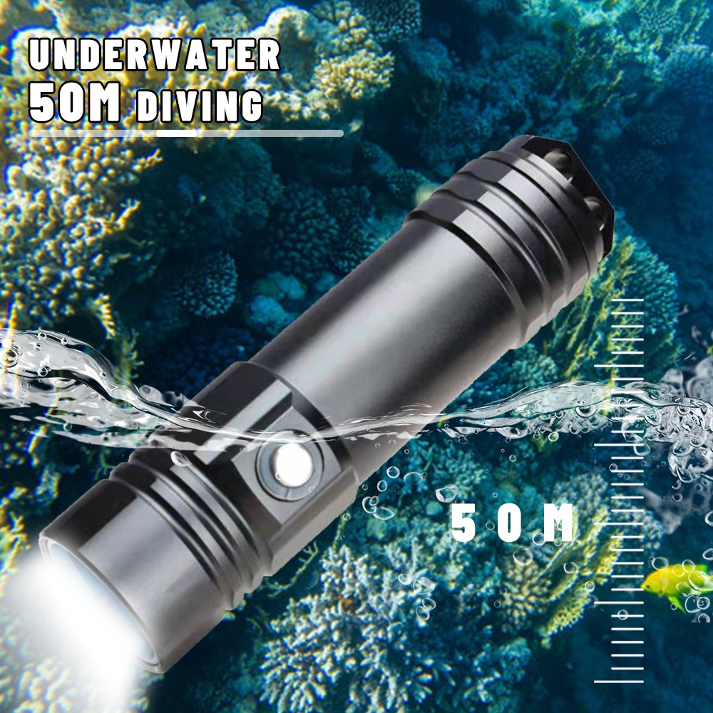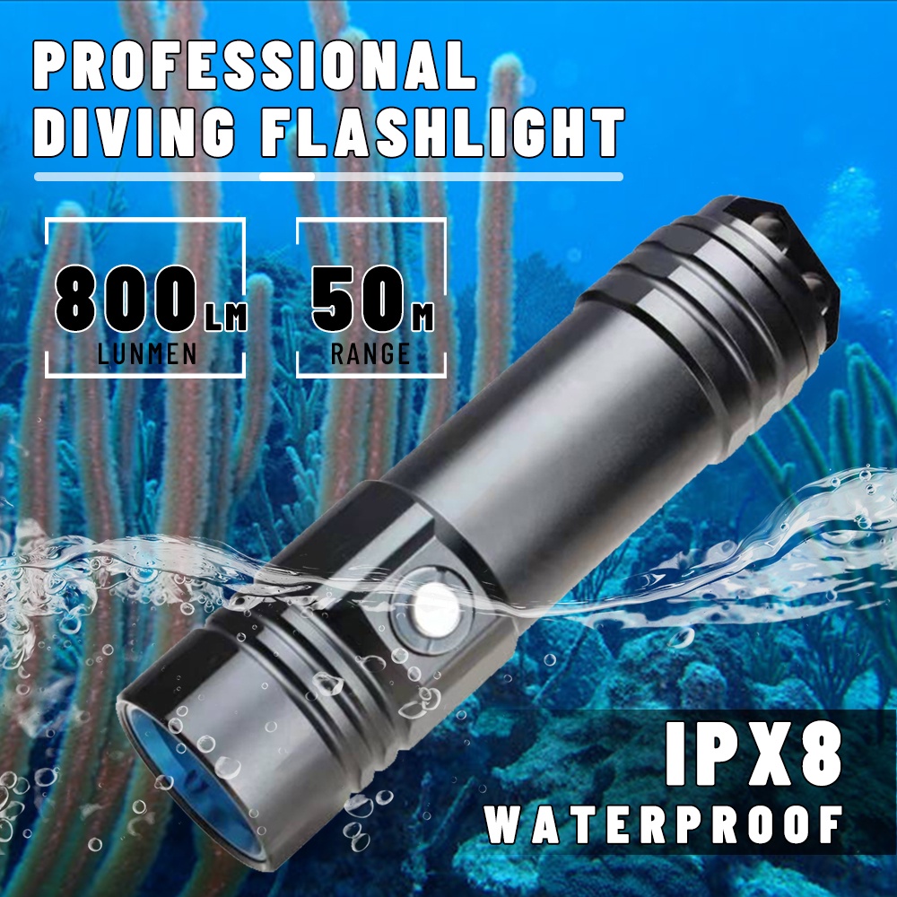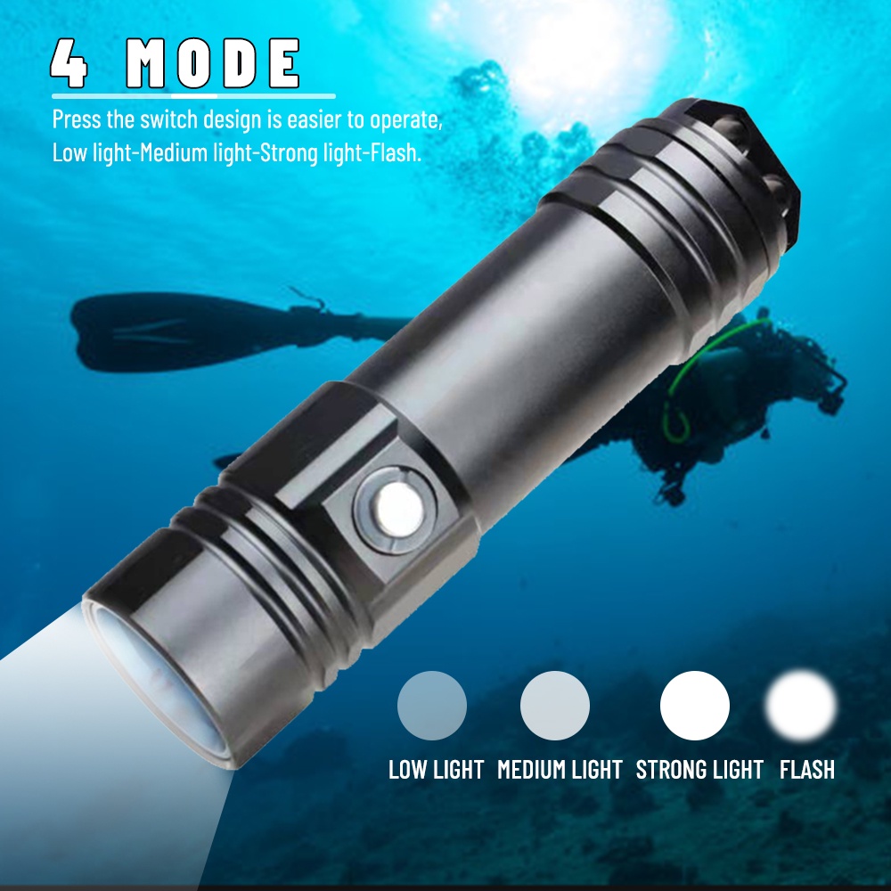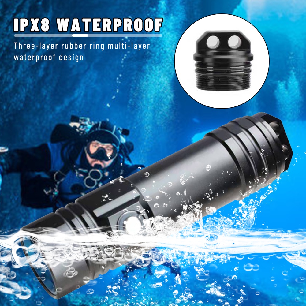 IPX8 Waterproof Super Bright Diving Flashlight Professional Diving Light Scuba Hand Lamp Powered by 26650 Battert Cells