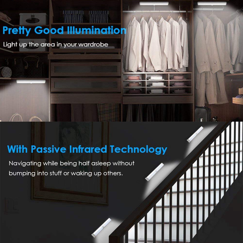 IR Motion Sensor Light, 10 LED Bulbs Operated Wireless Motion Nightlight Portable Magnetic Security Closet Light Stick Up Motion Sensor Night Lights for Closets Hallway Stairway