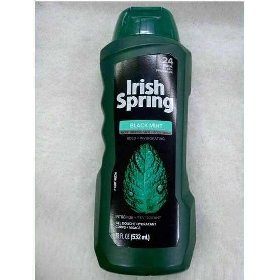 IRISH SPRING MOISTURIZING FACE+BODY WASH GEL DOUCHE BLACK MINT 532mL