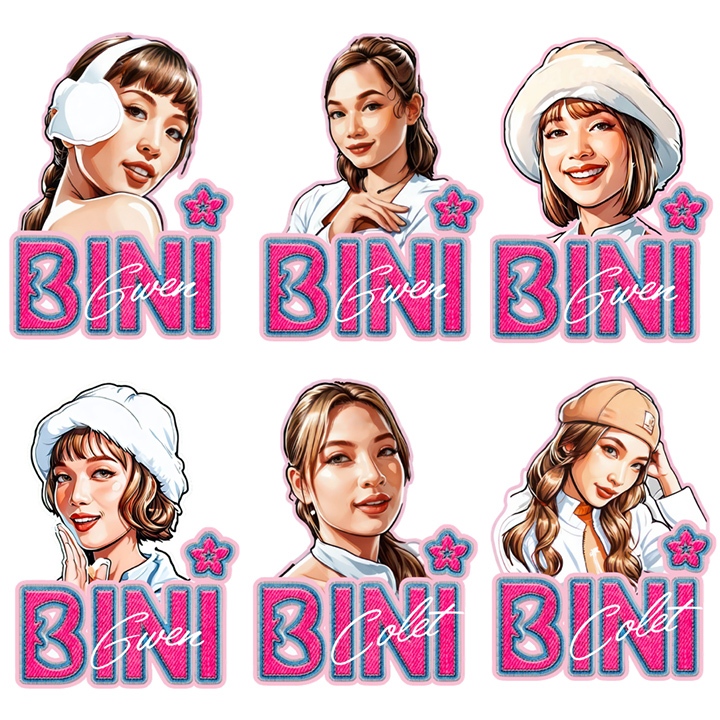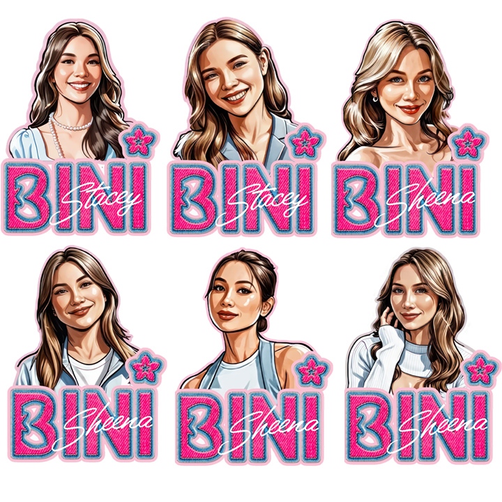 IRON ON - BINI Designs A4 Size Aiah Colet Sheena Maloi Jhoanna Mikha Gwen Stacey DTF Patches