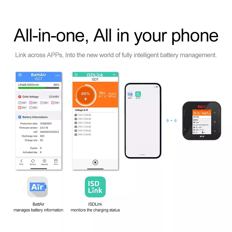 ISDT Air8 1-8S Lipo Balance Battery Charger 20A 500W DC Li-Po Li-Hv Li-Ion Li-Fe NiMH Ni-Cd Pb500W+15A Switch