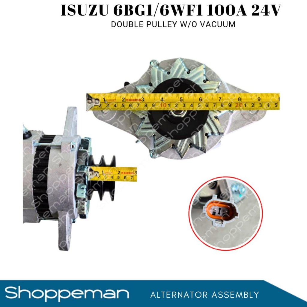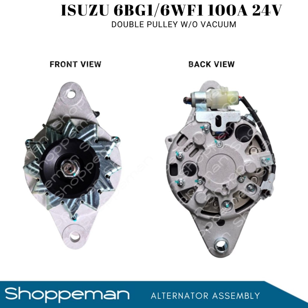ISUZU 6BG1 6WF1 ALTERNATOR ASSEMBLY 100A 24V DOUBLE PULLEY WITHOUT VACUUM