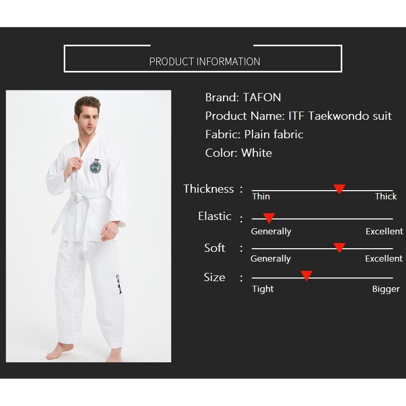 ITF Taekwondo Uniform White TKD Dobok Clothes Children Adult Unisex Martial Arts Training Sets