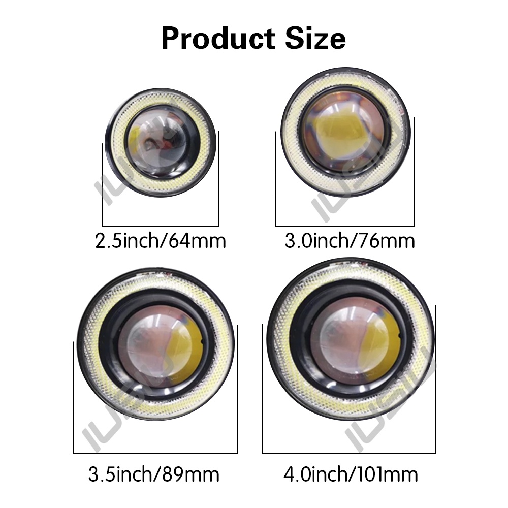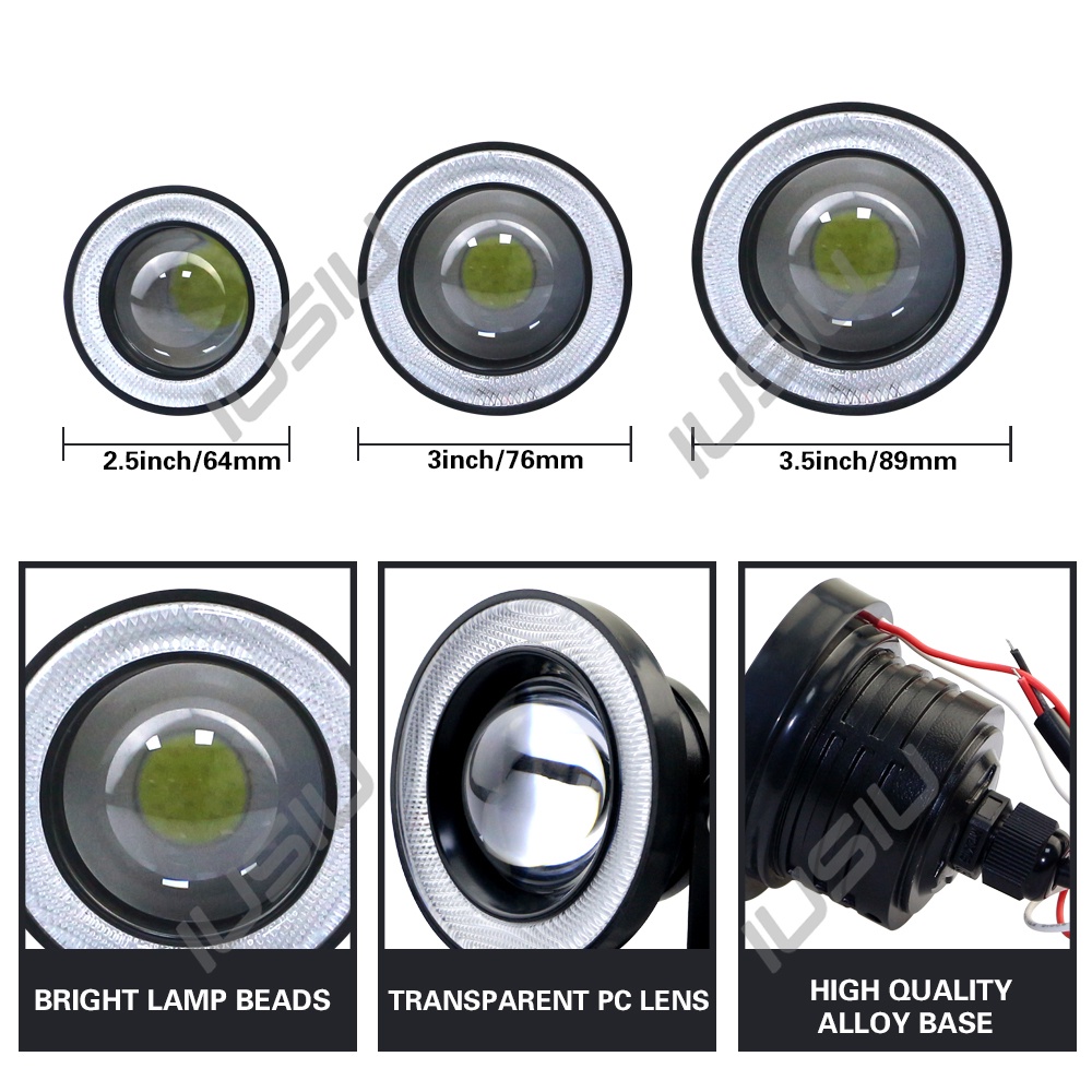 IUSIU 2 Pieces Angel eye Fog Light 2.5 inch 3 inch 3.5 inch 4 inch LED Headlight Daytime Running Light COB Angel eye Led Fog Light Motorcycle Fog Lamp Car Led Headlamp