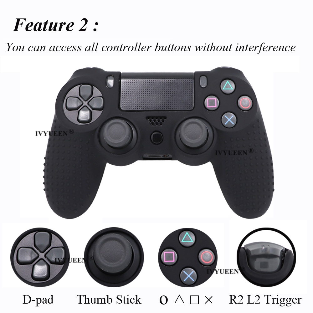 IVYUEEN Anti-slip Silicone Cover Skin Case for Sony PlayStation Dualshock 4 PS4 DS4 Pro Slim Controller Stick Grips
