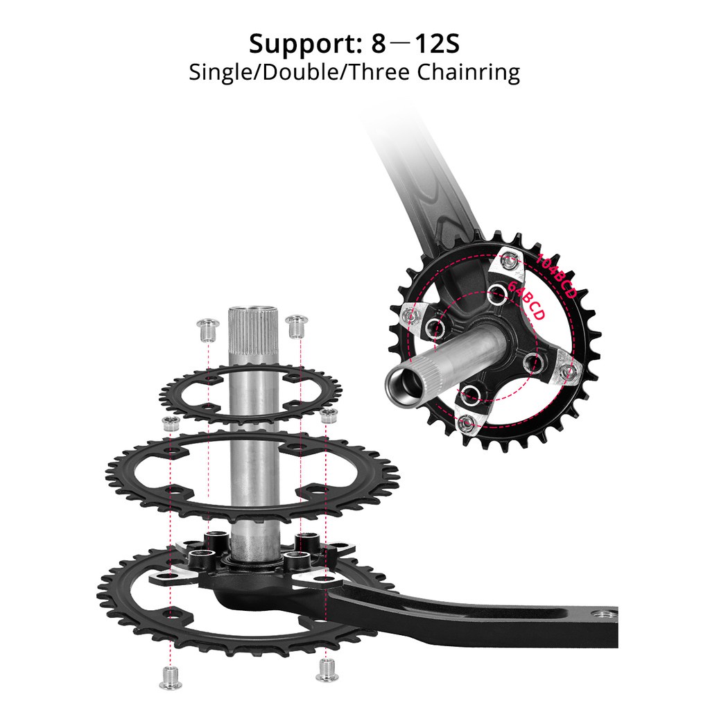 IXF Crankset 104 BCD Bottom Bracket with Axis Spindle MTB Hollowtech Connecting Rods for Bicycle