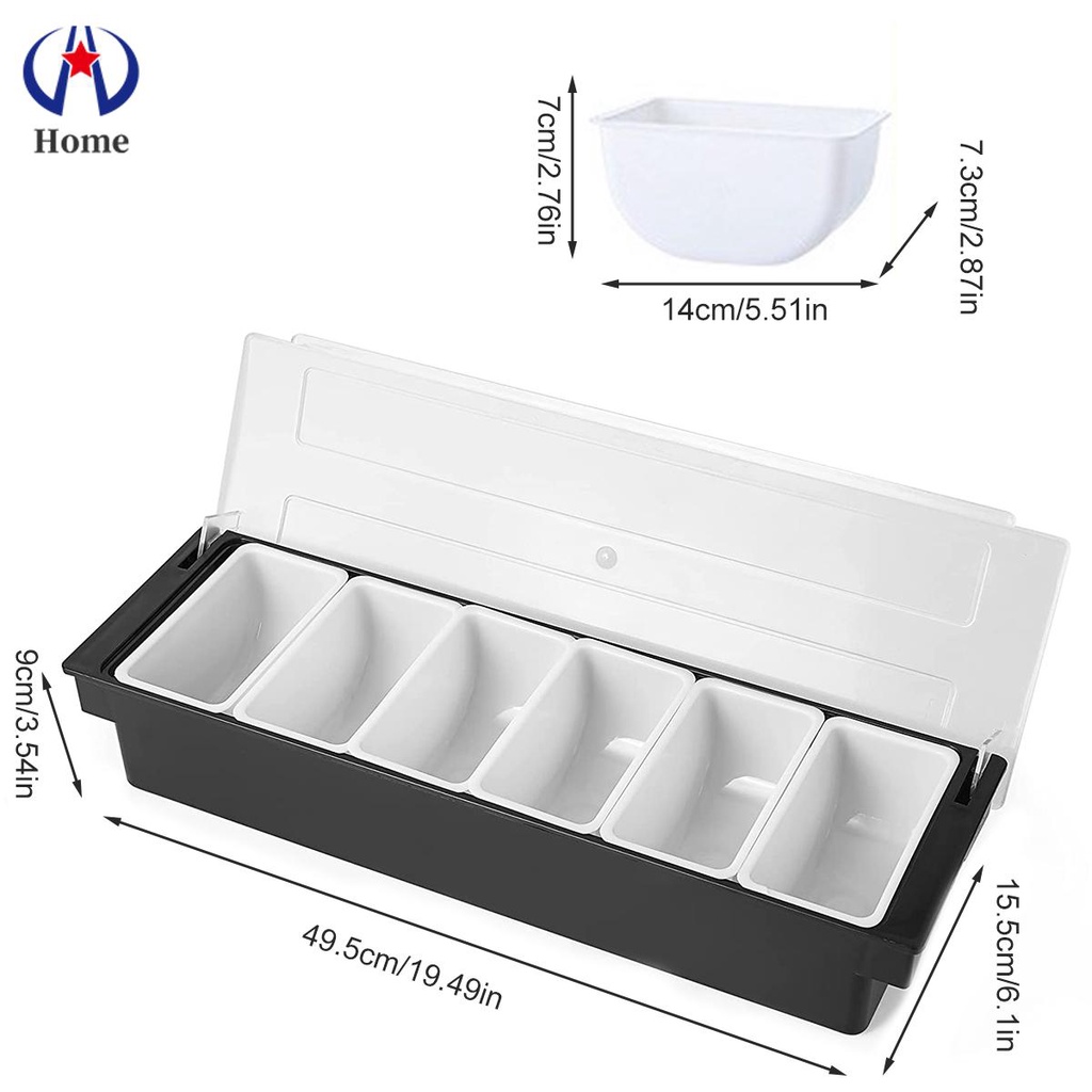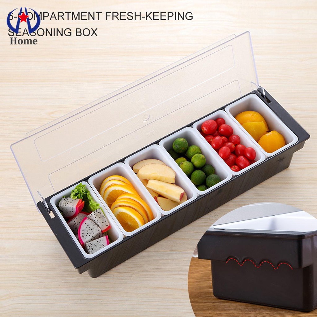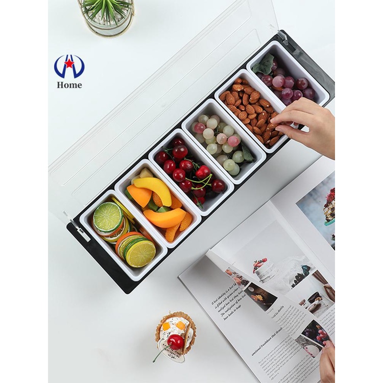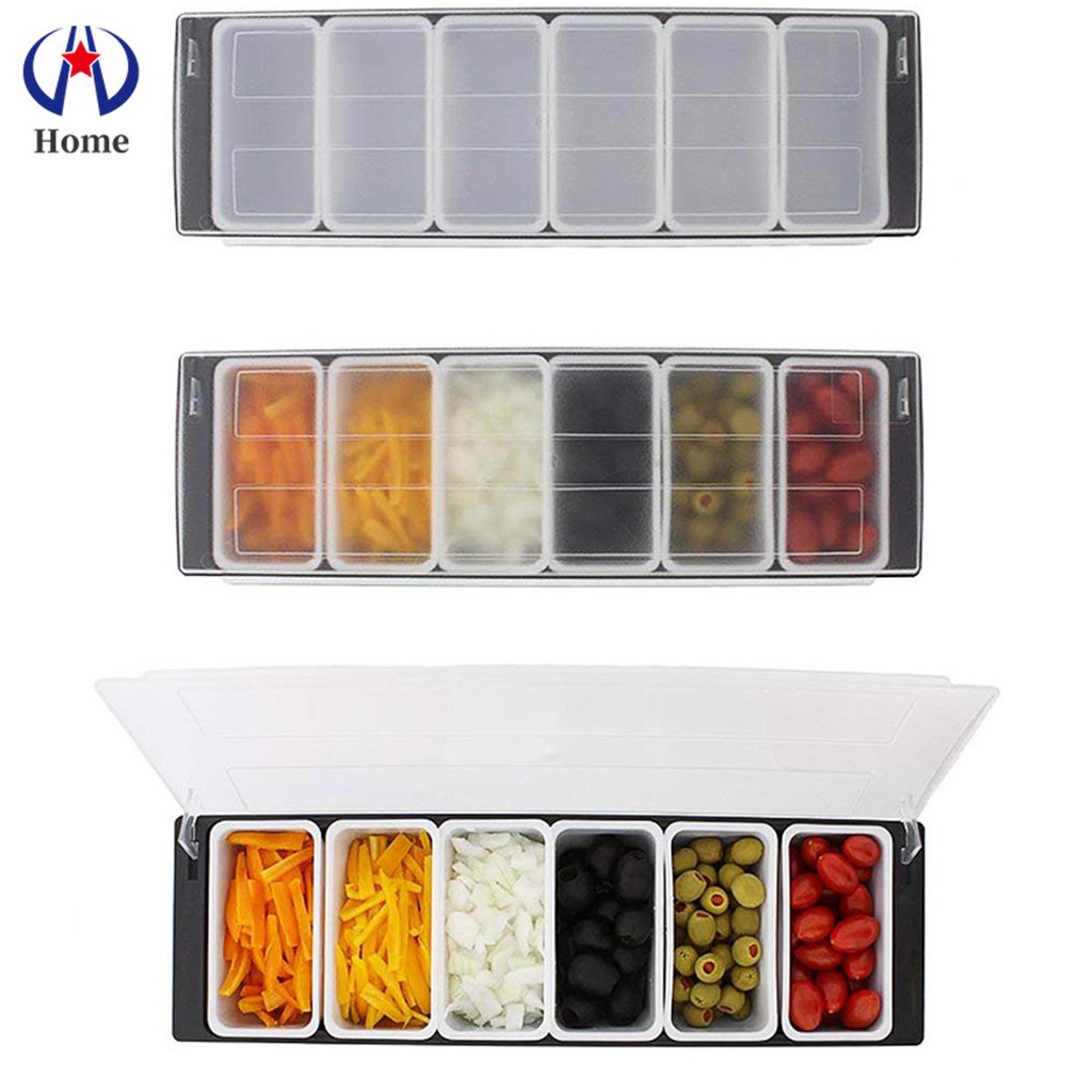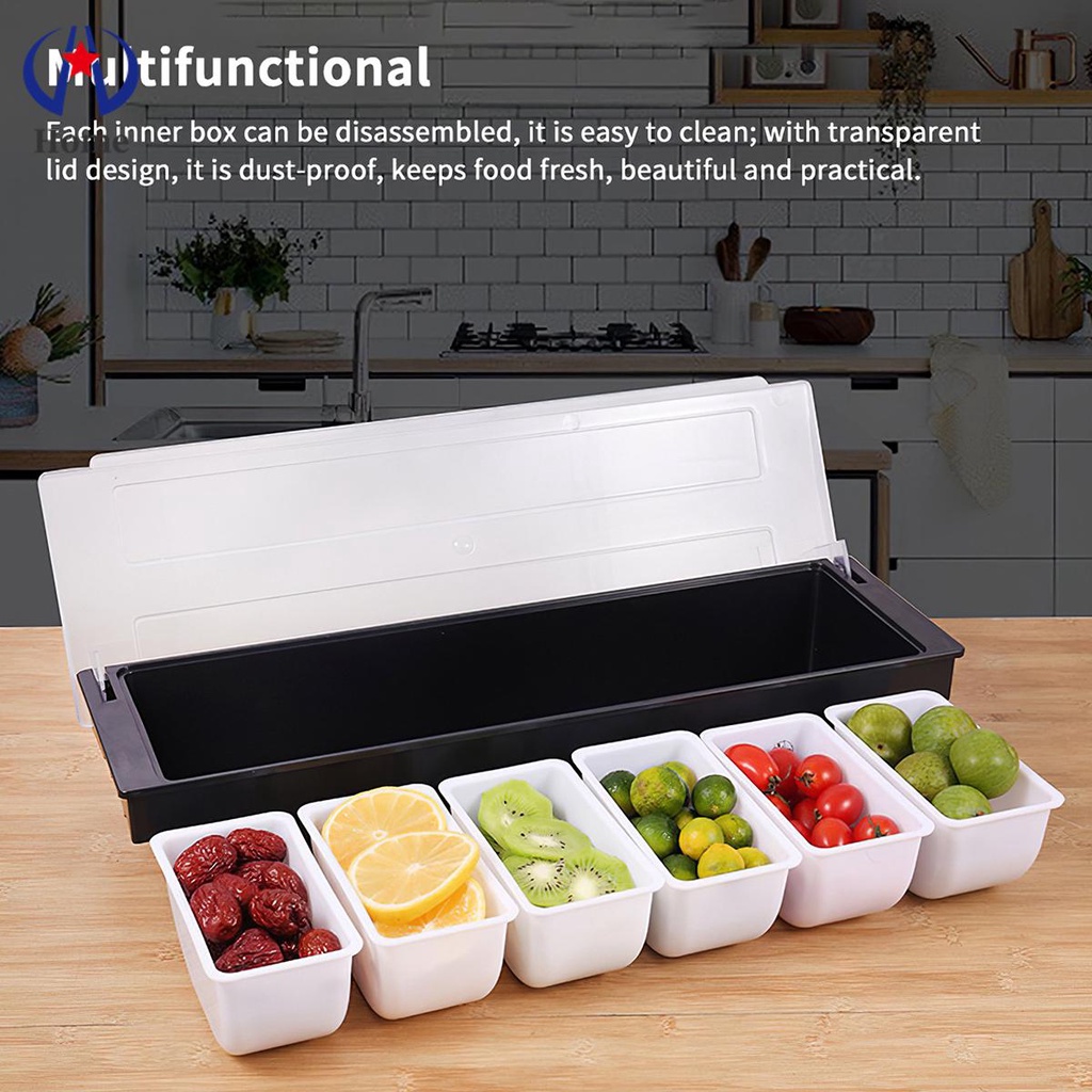 Ice Cooled Condiment Serving Container Chilled 6-Compartment Trays Reusable Ingredients Condiment Dispenser