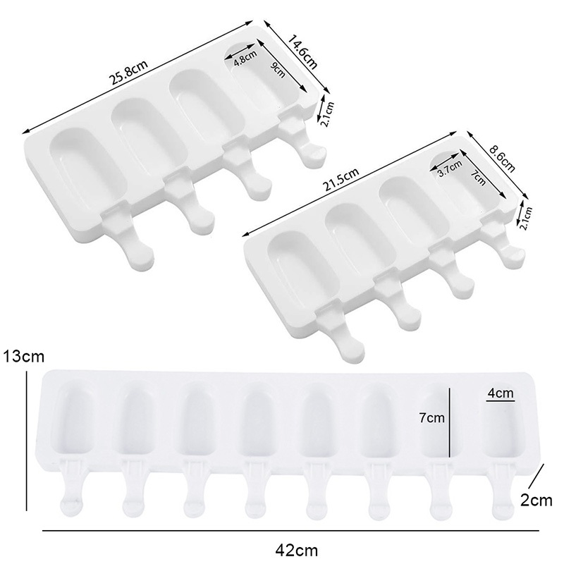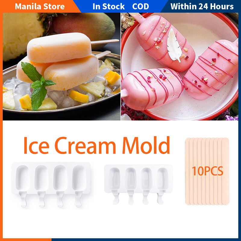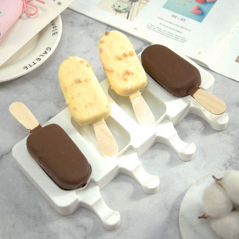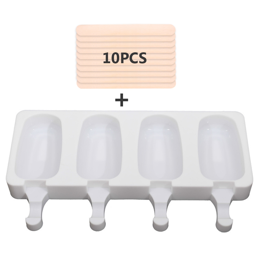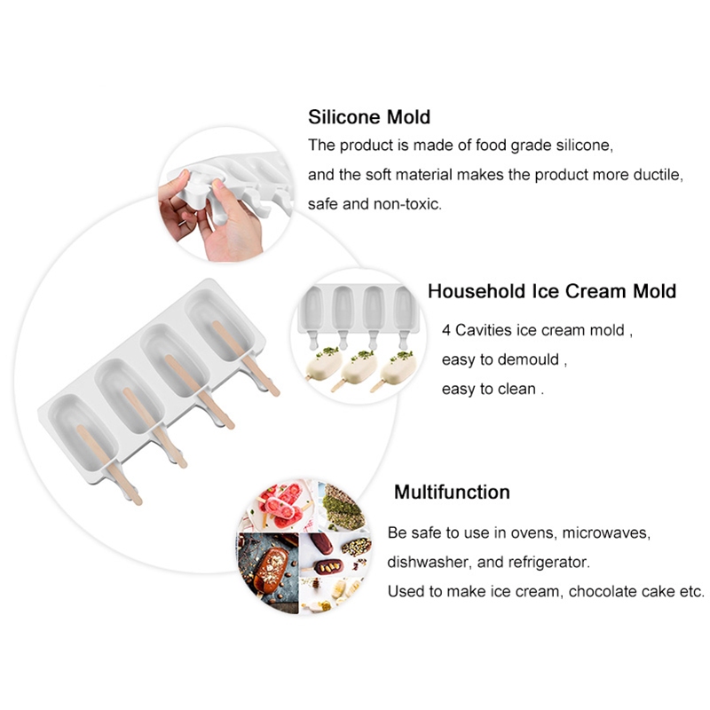 Ice Cream Mold 4 Cell Silicone Freezer Fruit Juice Ice Pop Cube Maker Mould With Sticks DIY Molder