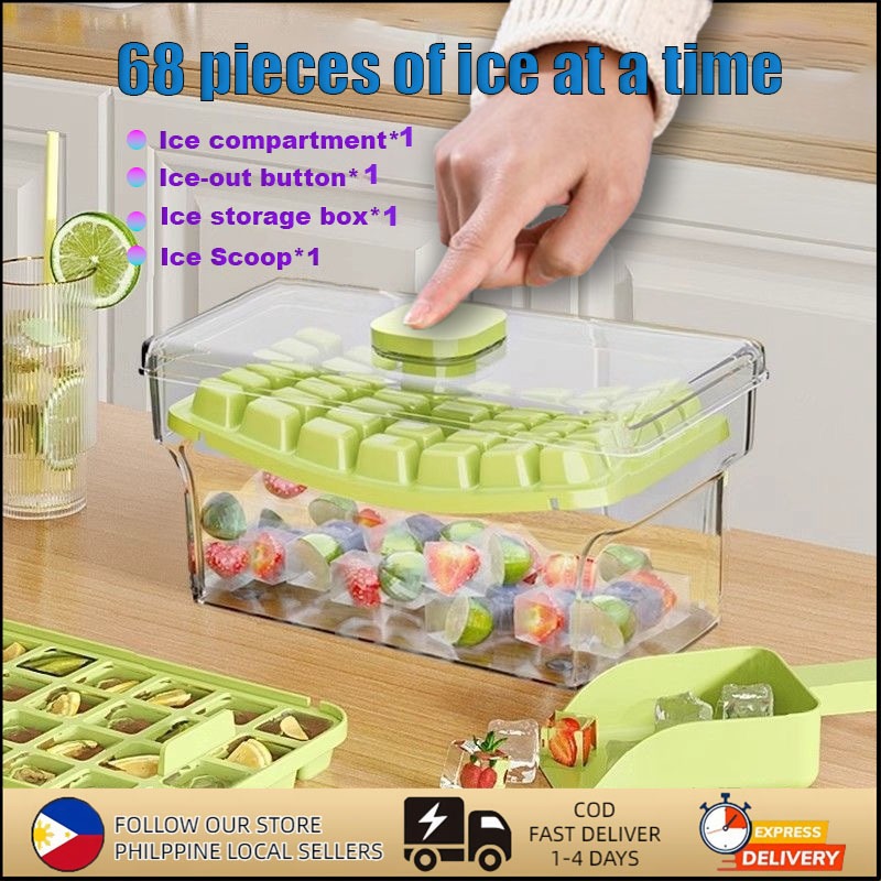 Ice Cube Molder 64 Grids Silicone Fruit Maker with Square Shape Lid DIY Jelly Ice Box Home Ice Ball