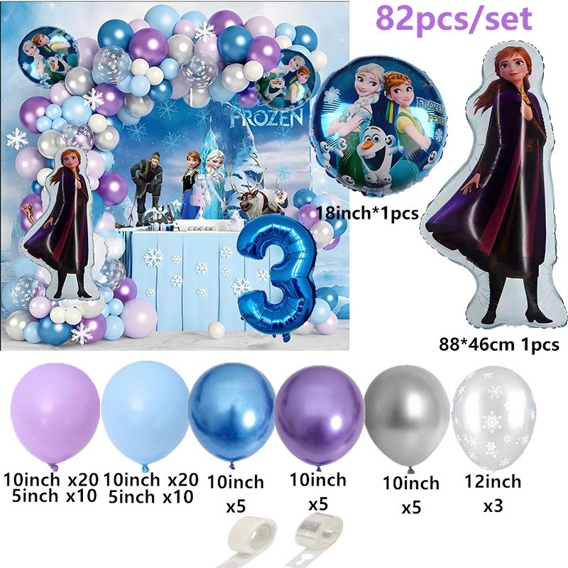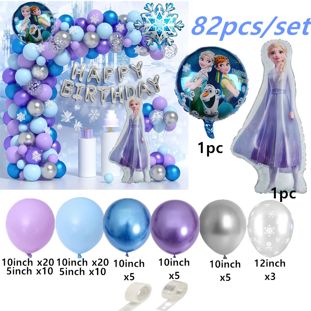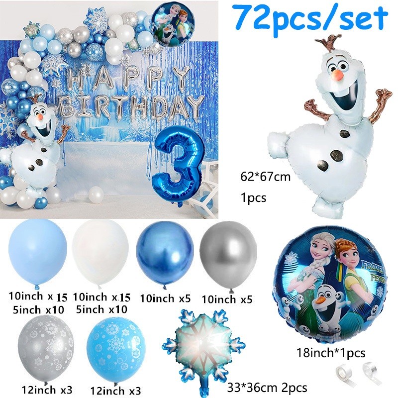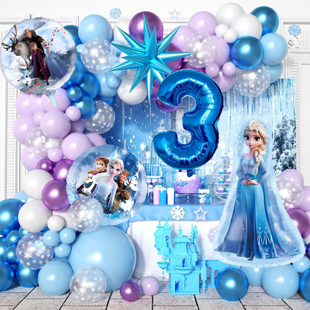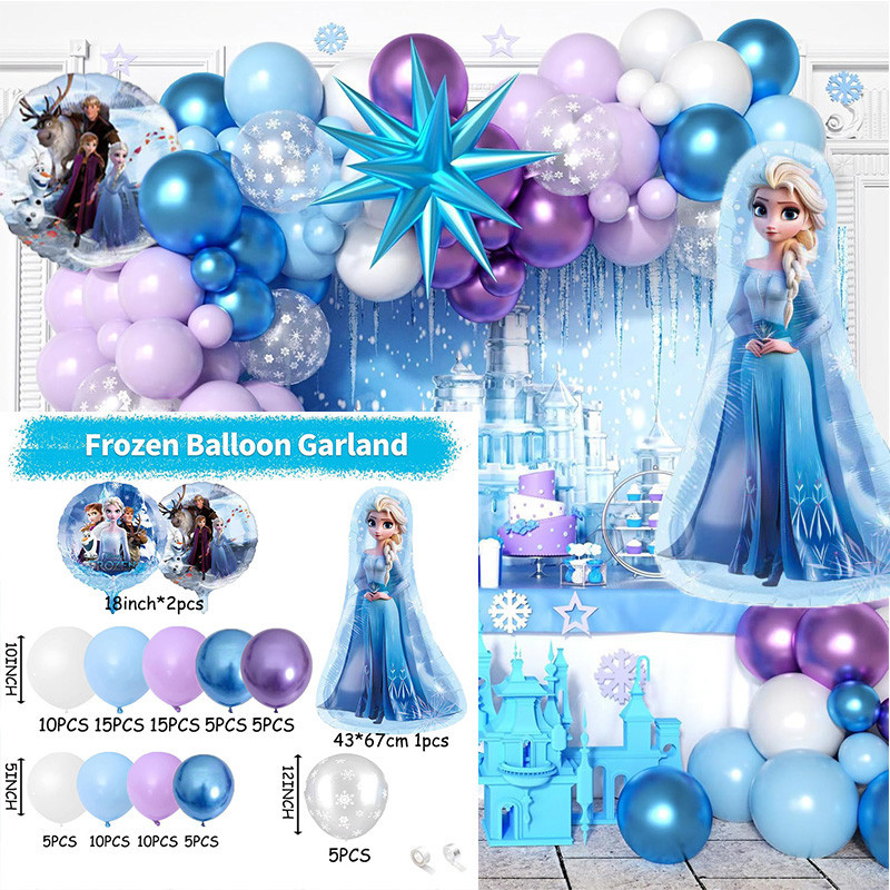 Ice Snow Frozen Theme Blue Purple Metallic Balloons Garland Arch Kit with Olaf Foil Ballon for Girl Birthday Party Baby Shower Wedding Decorations