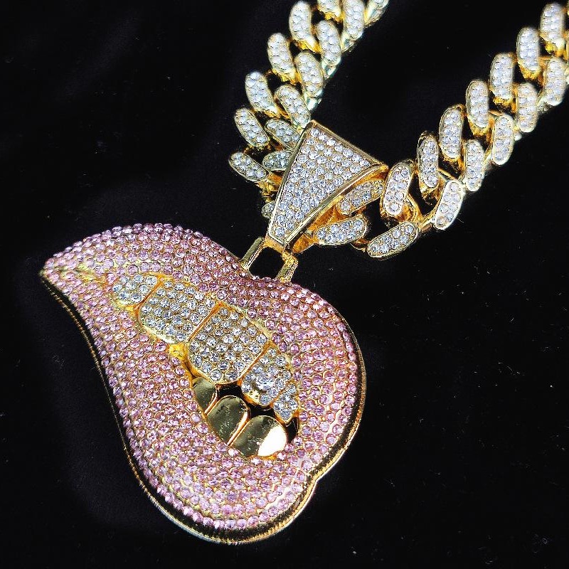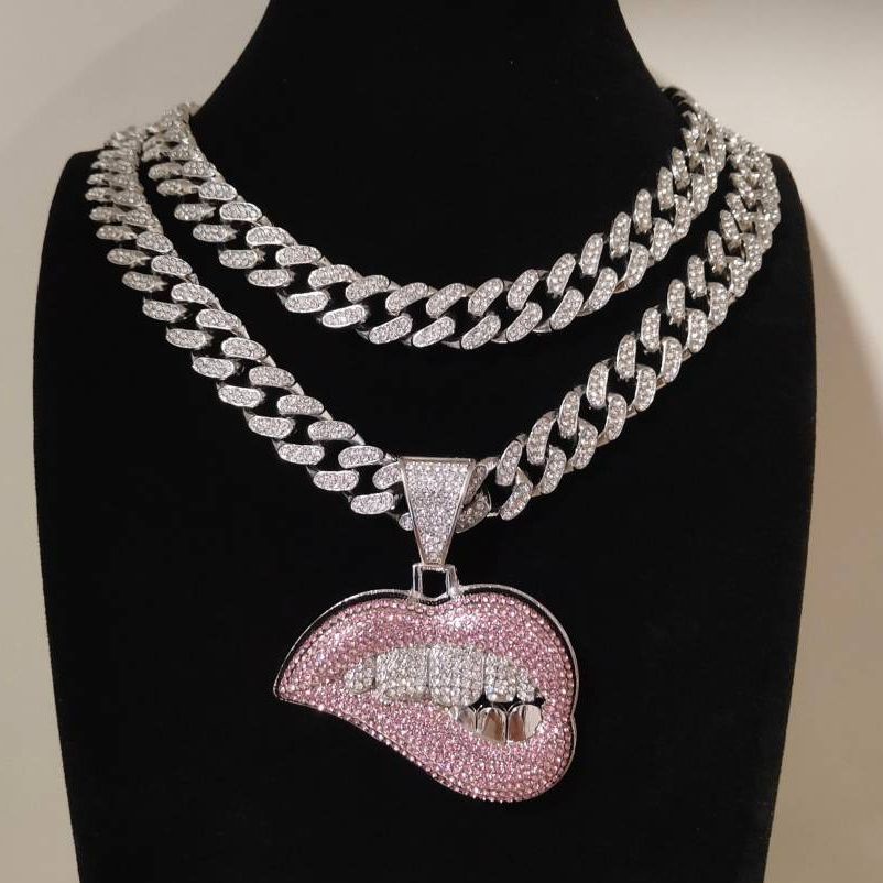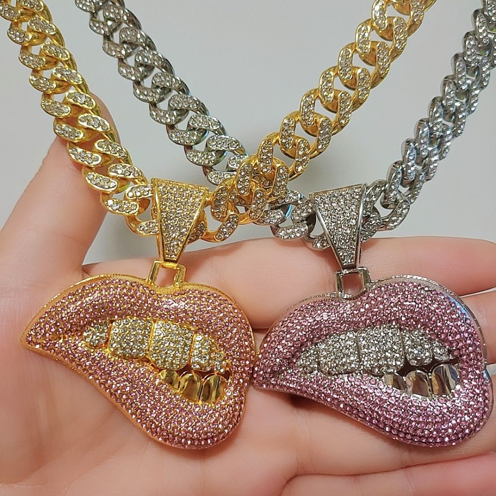 Iced Out Miami Cuban Link Chain Sexy Biting Lips Pendant Necklace For Men's Chains Hip Hop Jewelry On The Neck