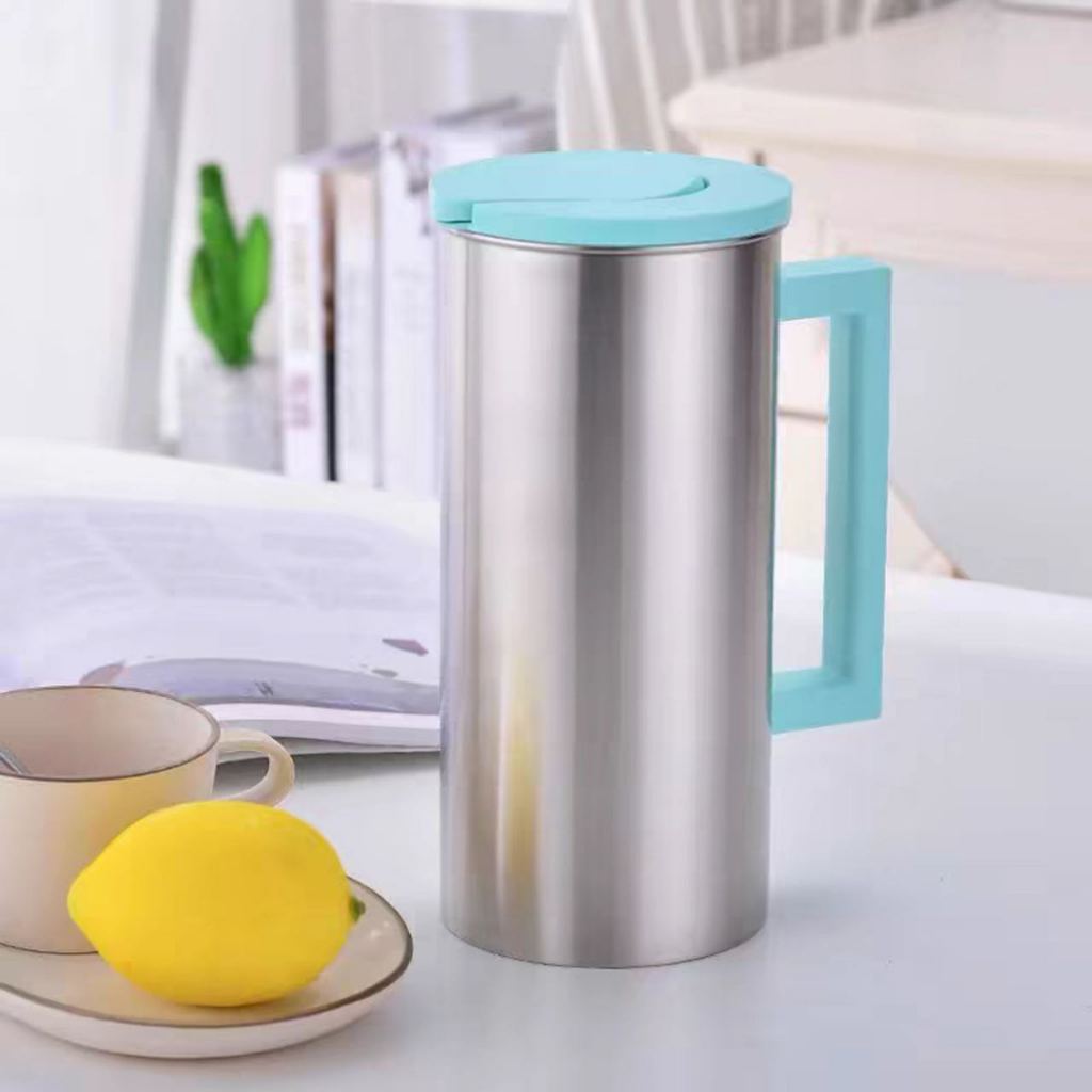 Iced Tea Pitcher Beverage Water Stainless Steel Pitcher with Lid Hot Cold Water Pitcher 1.8L