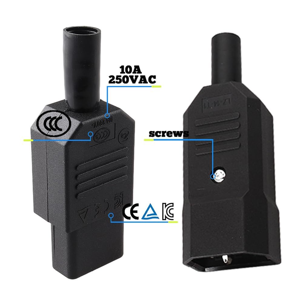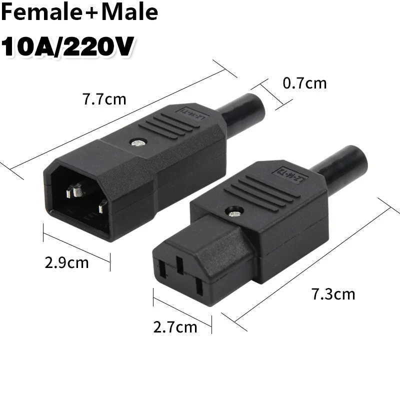 Ebike Iec Straight Cable Plug 3 Pin Ac Female Male Socket Charging Extension Line Cable Plug