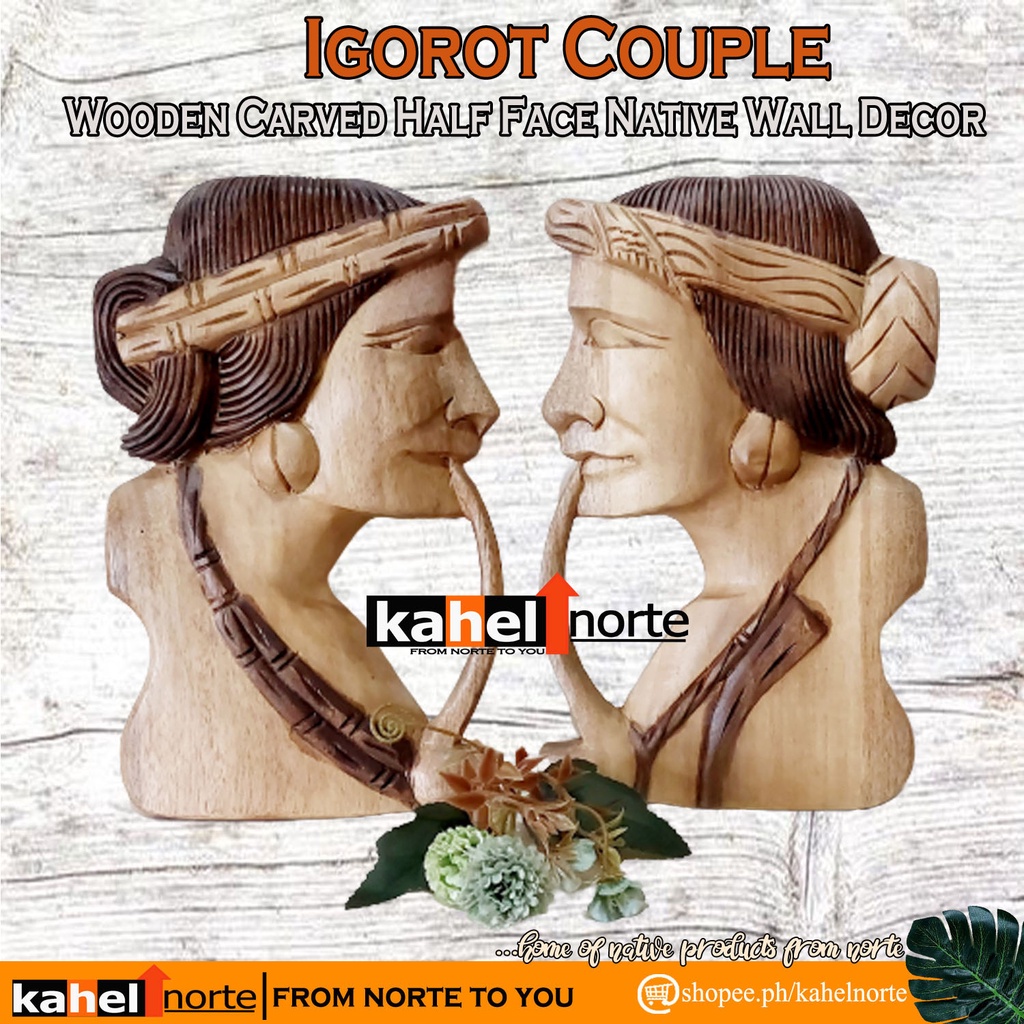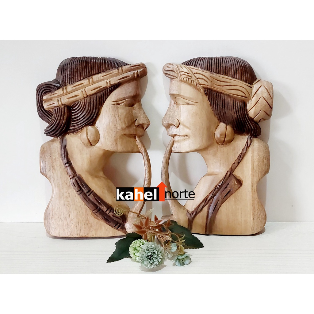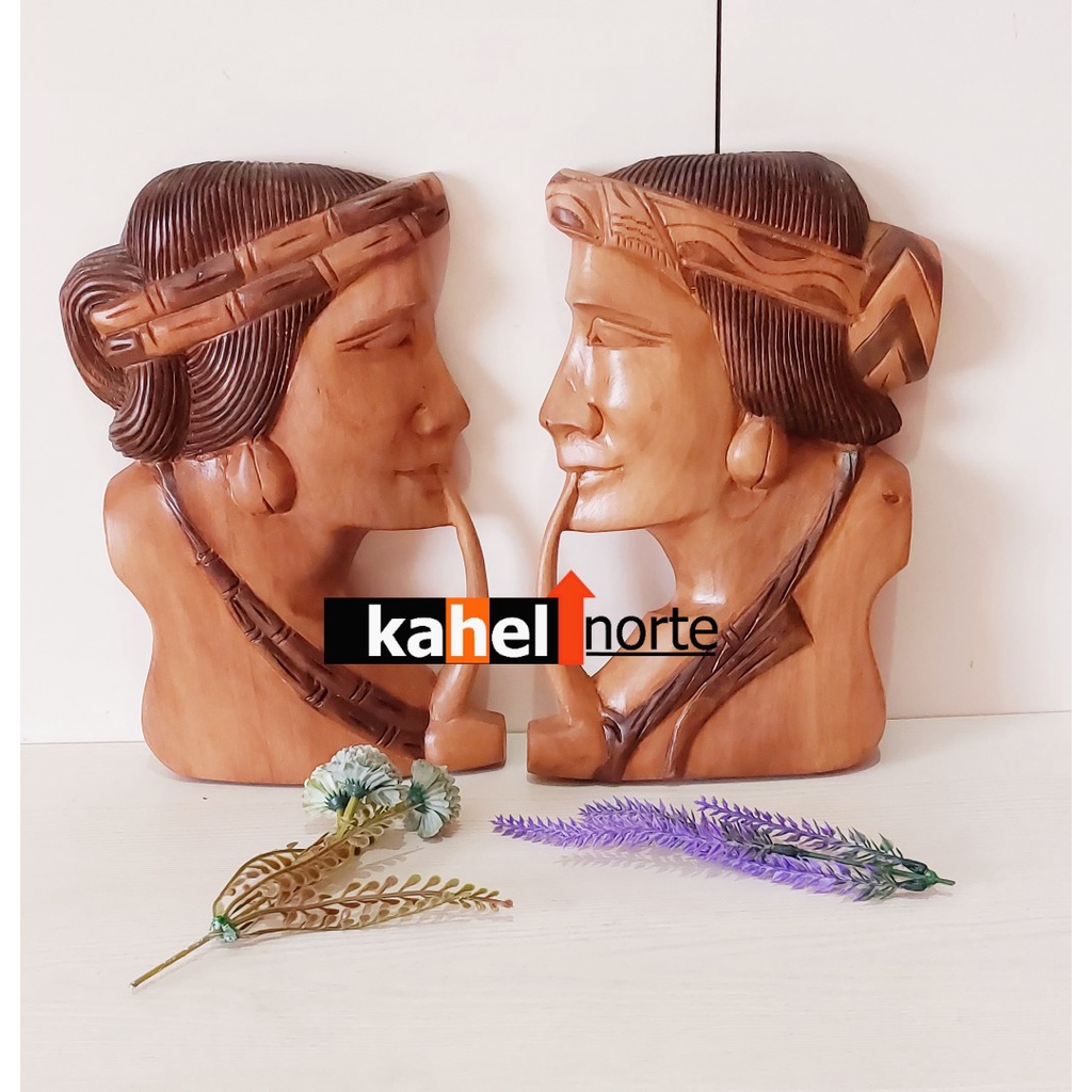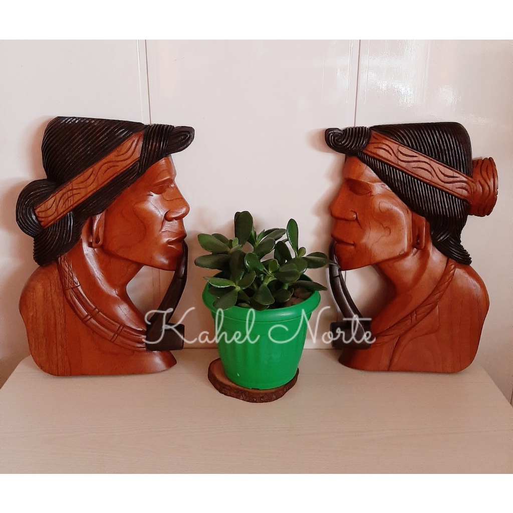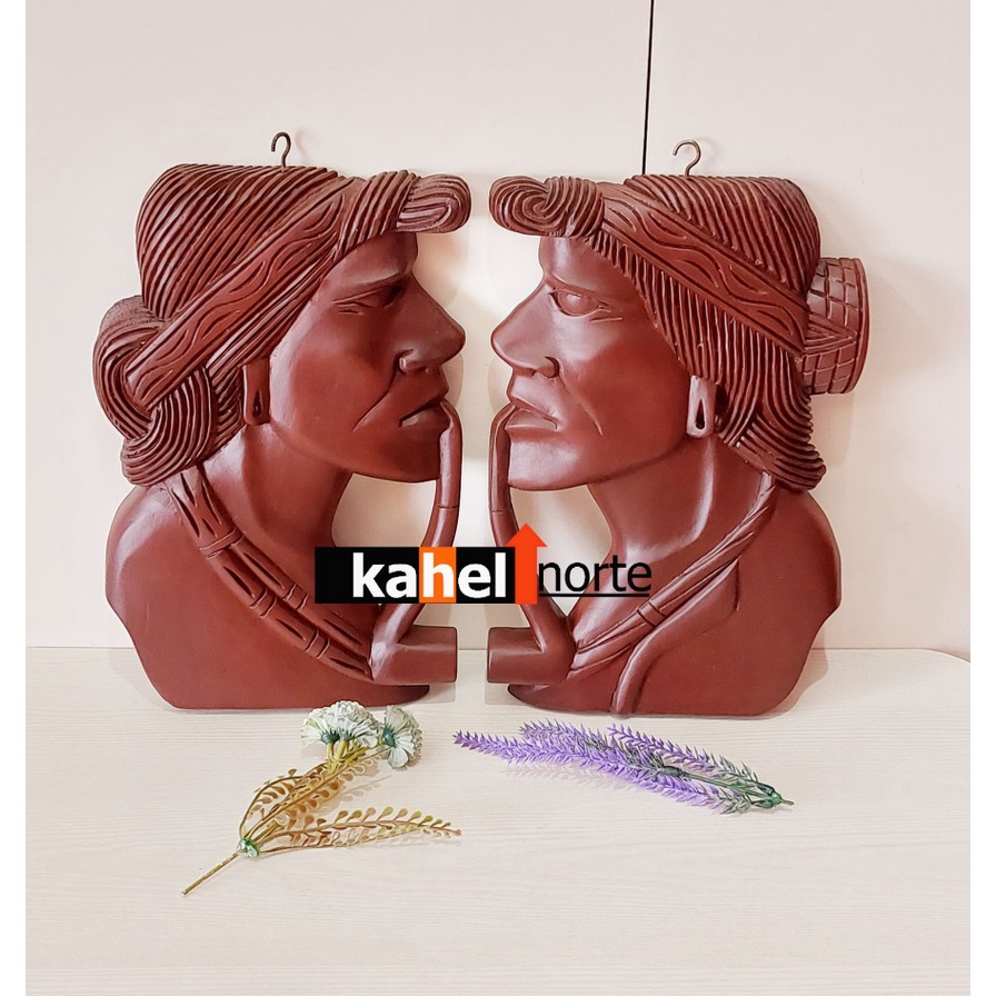 Igorot Couple - 1 Pair Wooden Carved Half Face Native Wall Decor