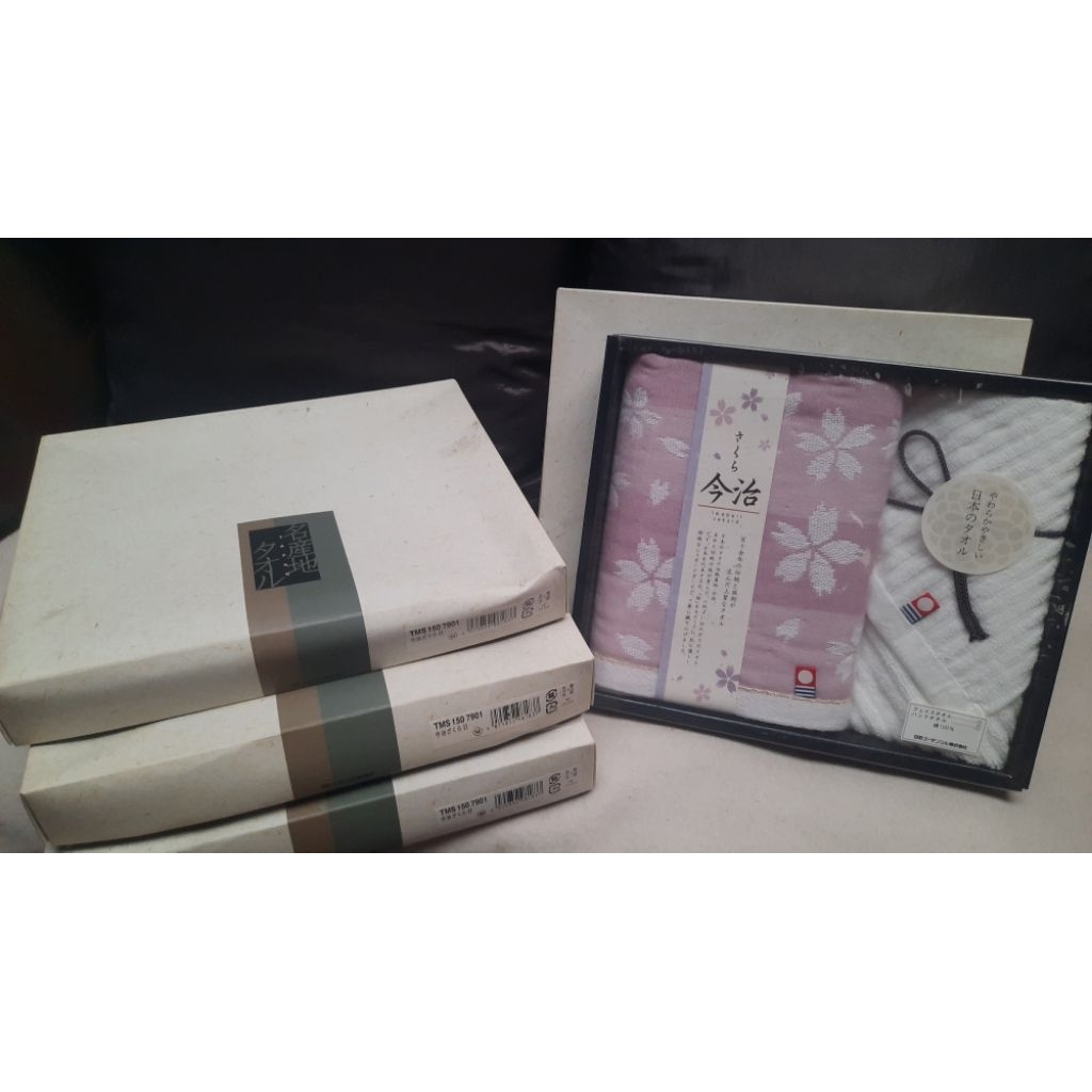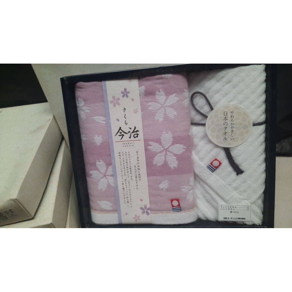 Imabari 1 long face towel pink zakura,1 short face towel white New boxed Japan per box