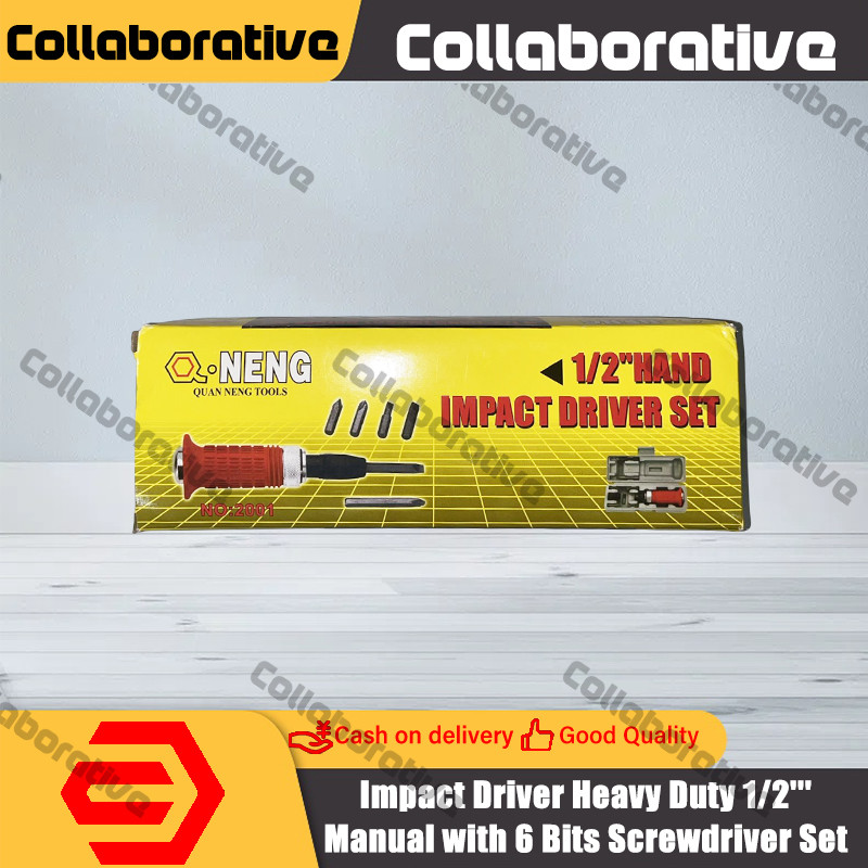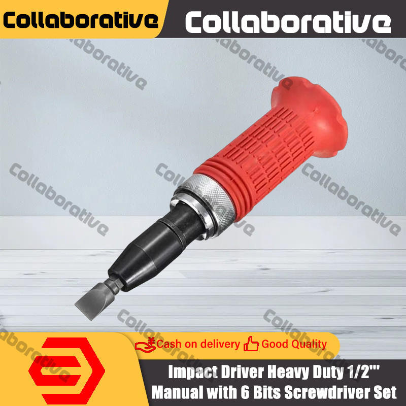 Impact Driver Heavy Duty 1/2'' Manual with 6 bits Screwdriver Set REversible soft grip hand tool