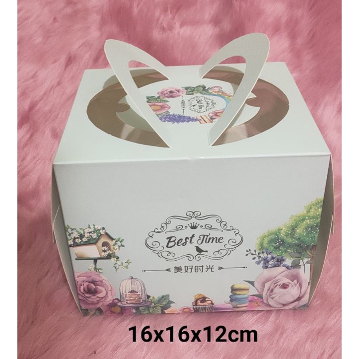 Imported Cake Box 16x16x12.5cm / 16x16x15cm with free cakeboard