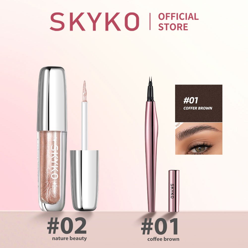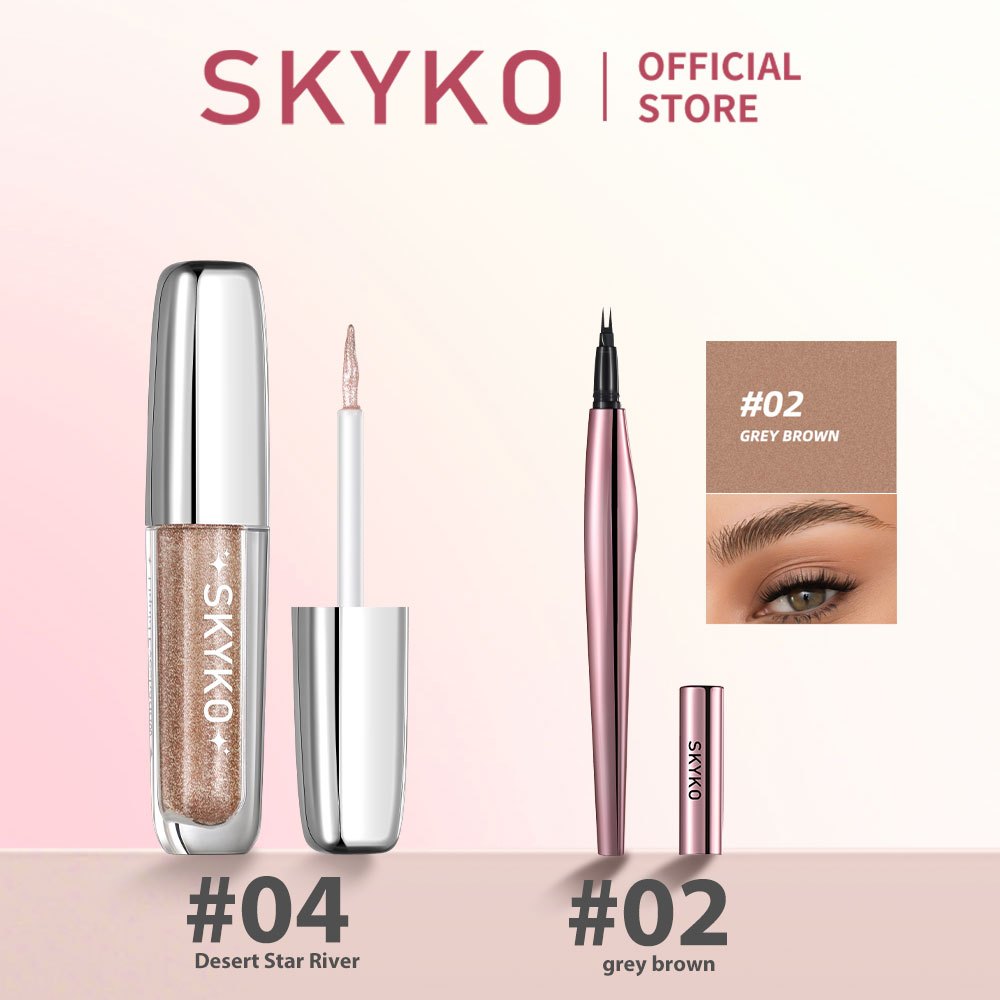 SKYKO 2 Pcs Face Makeup Set Liquid Eyeshadow Waterproof Liquid Eyebrow Pencil
