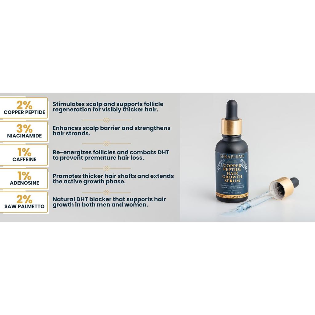 SeraphimeCopperPeptideSerumforHairGrowth-Caffeine,Niacinamide,RosemaryOil,SawPalmettoHairDensitySerum,TopicalTripeptideScalpCareforHairThinning,Women&Men1floz