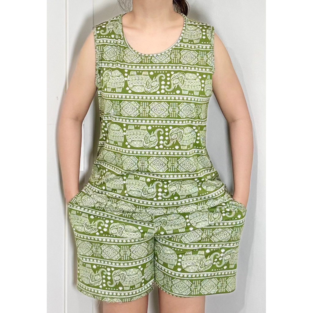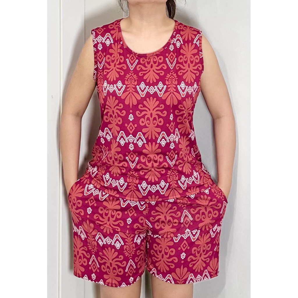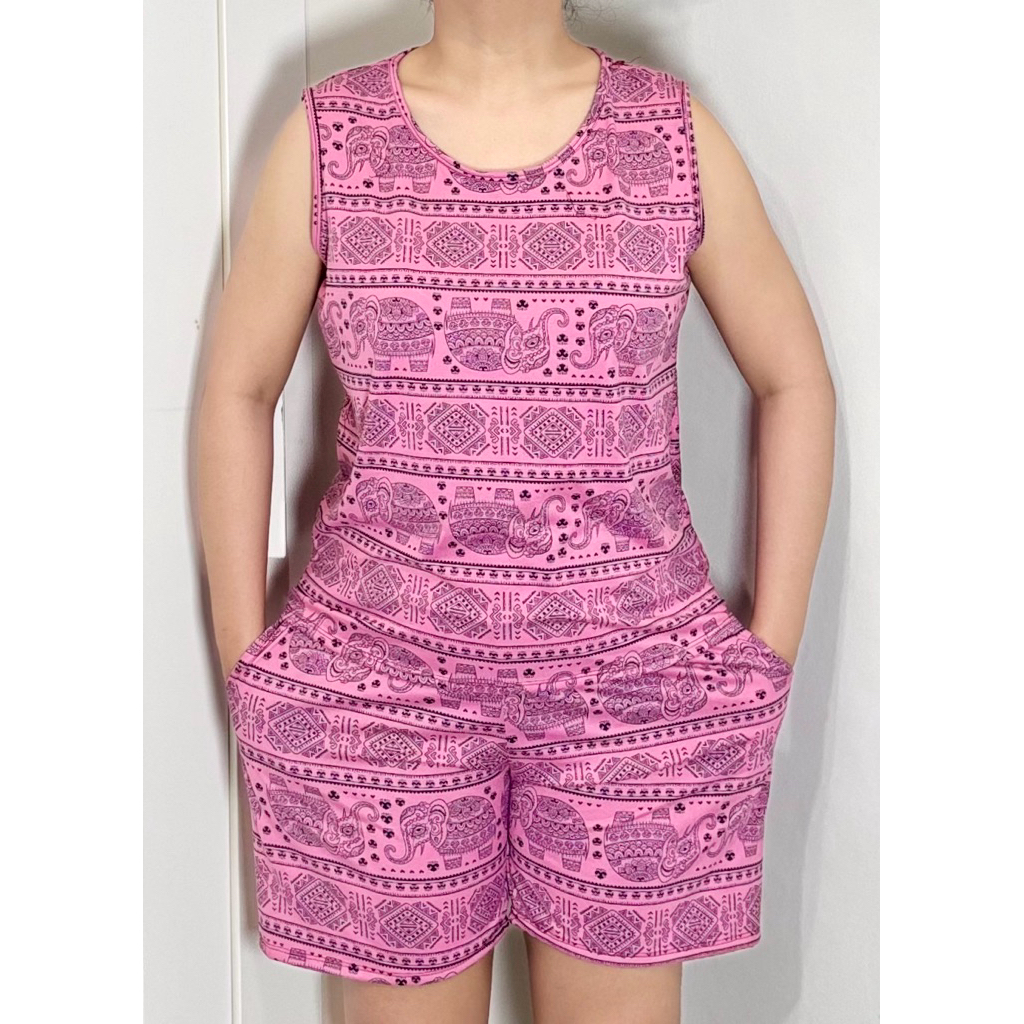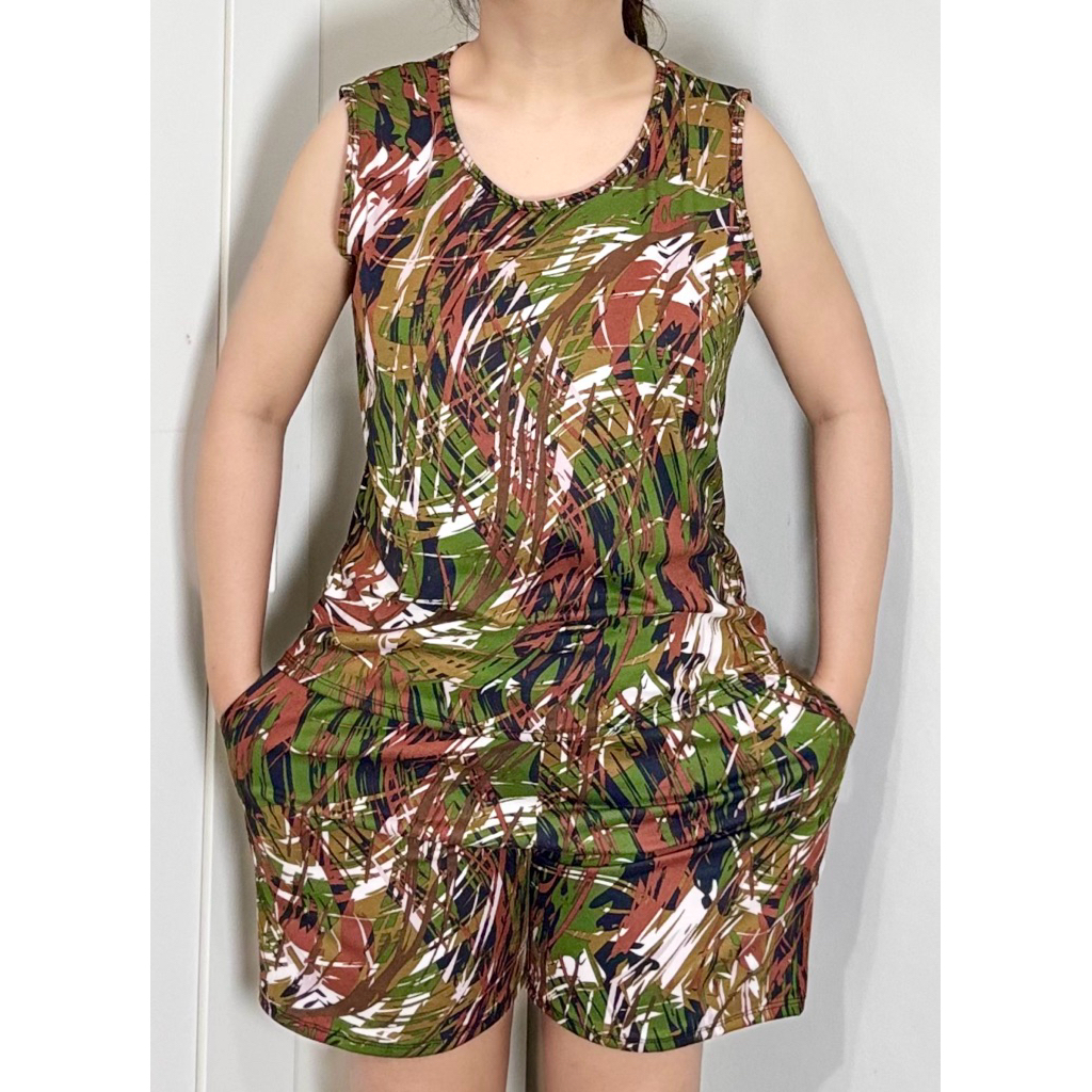 TERNO - Printed Sleeveless and Shorts Pambahay Pantulog for Adults w/ Two Side Pockets