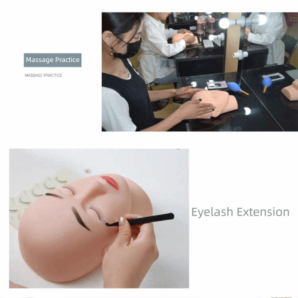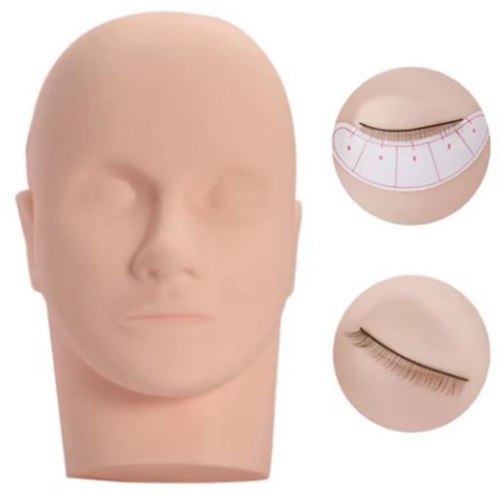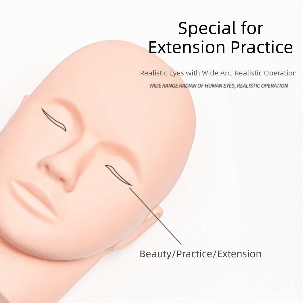 MIQUELPW Eyelash Extension Practice Model, Closed Eyes Beginners Mannequin Head, Professional Flat Head Realistic Skin Texture Portable Massage Practice Model Makeup Training