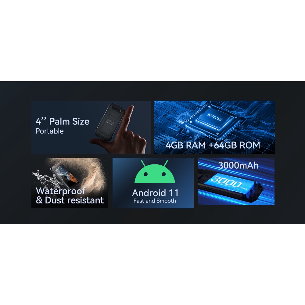 In Stock Cubot KingKong MINI 2 Pro 4'' Waterproof Mini Smartphone 4GB+64GB (128GB Extended) Dual SIM 4G GPS