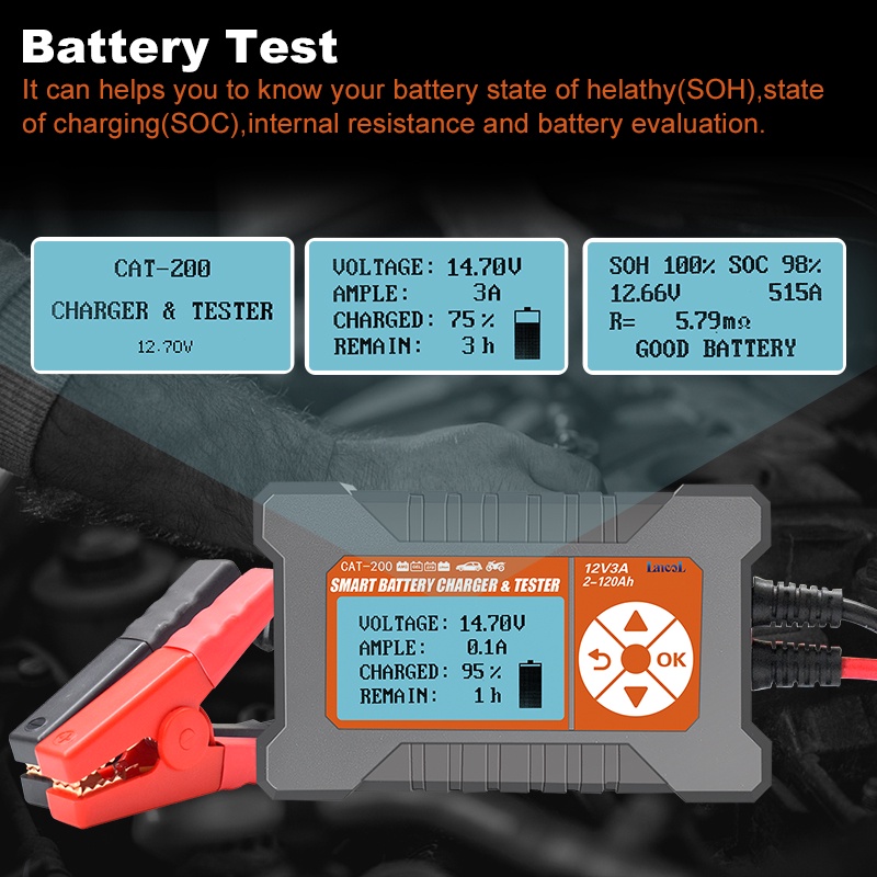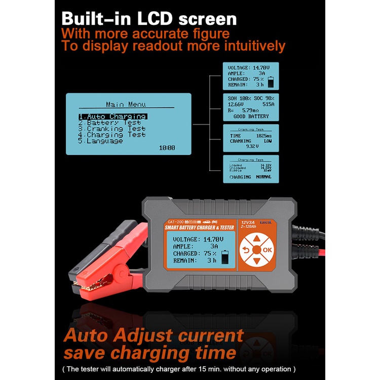 In Stocks Lancol Cat200 Car Battery Tester And 12V 3A Car Battery Charger Battery Analyzer Battery CCA Meter 40-2000CCA Battery Testers
