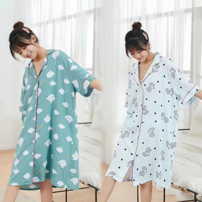 oversize cotton Nightdress challis Dress Women's Lingerie Sleepwear pajama daster NightWear