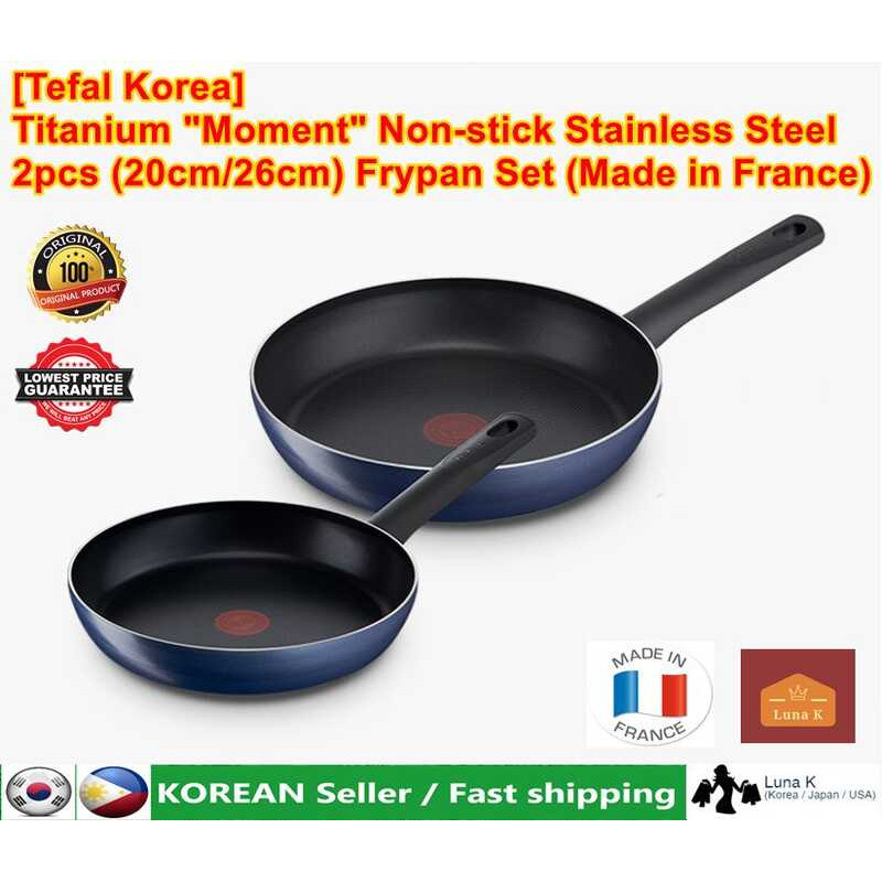 [Tefal Korea] Titanium "Moment" Non-Stick Stainless Steel 2Pcs 20Cm / 26Cm Frypan Set Made In France