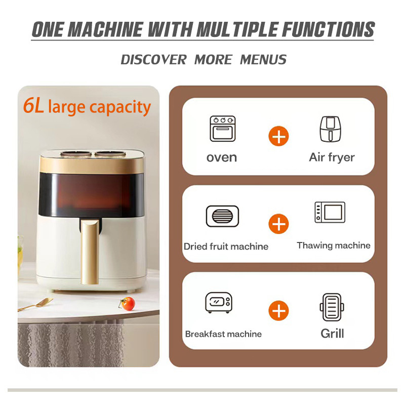Intelligent Temperature Control Air Fryer6L High-Capacity 360°Heating Non-stick Automatic Oven