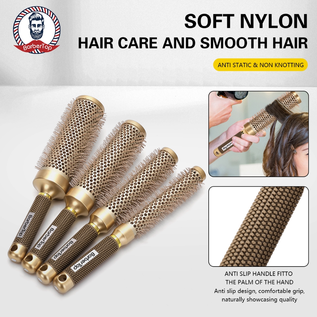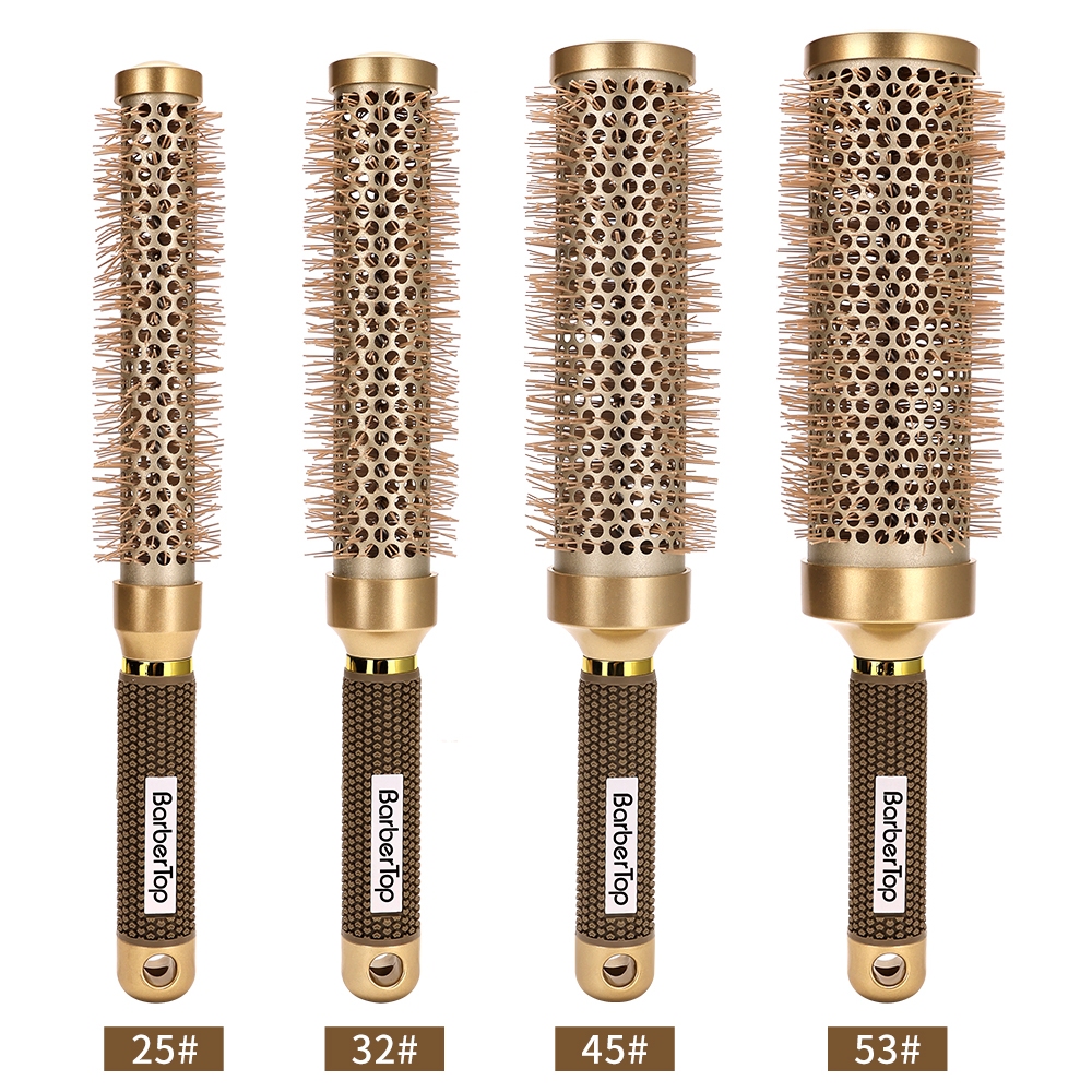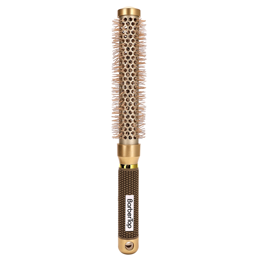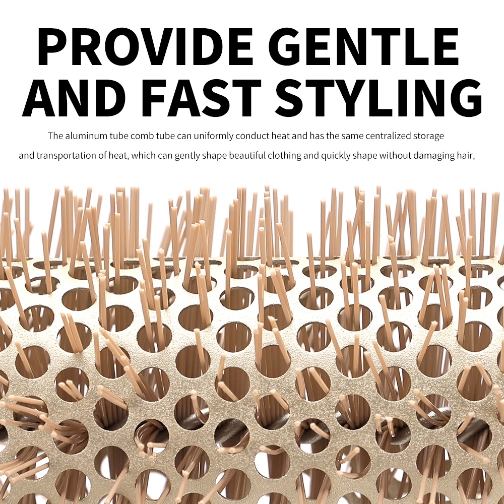 In stock# Salon hair roller comb hair salon barber professional curly comb round comb brush big wave hairstyle high temperature ceramic round comb styling tool gold extended