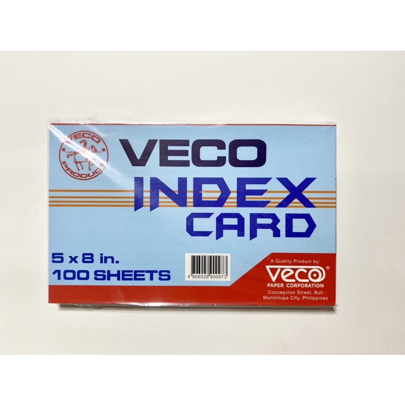 Index Card Ruled White Veco 3x5, 4x6, 5x8 inches 100 sheets