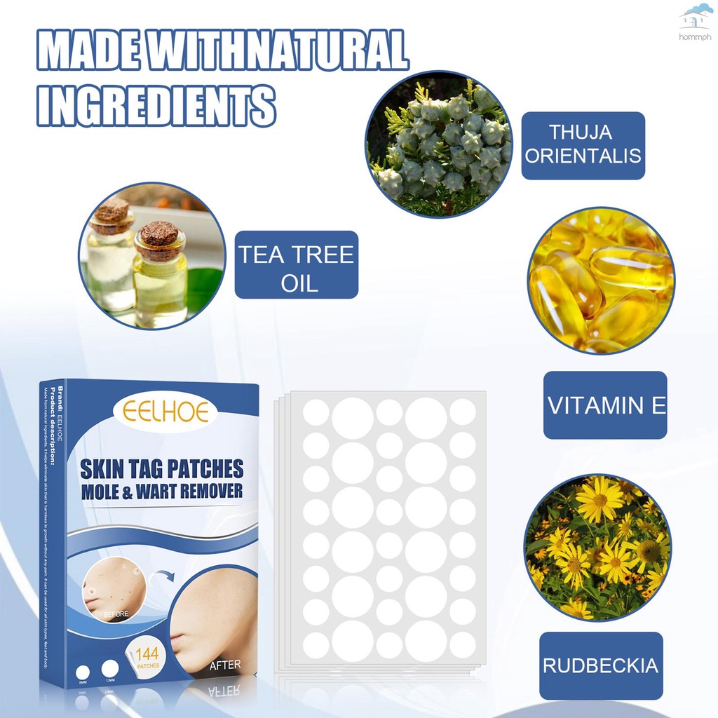 EELHOE 144Pcs Skin Tag Patches Mole Wart Remover Natural Ingredients Soften Keratin Painless Removal