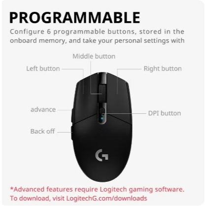 Logitech G304 Computer Gaming 2.4G Wireless Mouse Ergonomic Mouse HERO Engine 12000DPI for LOL PUBG.