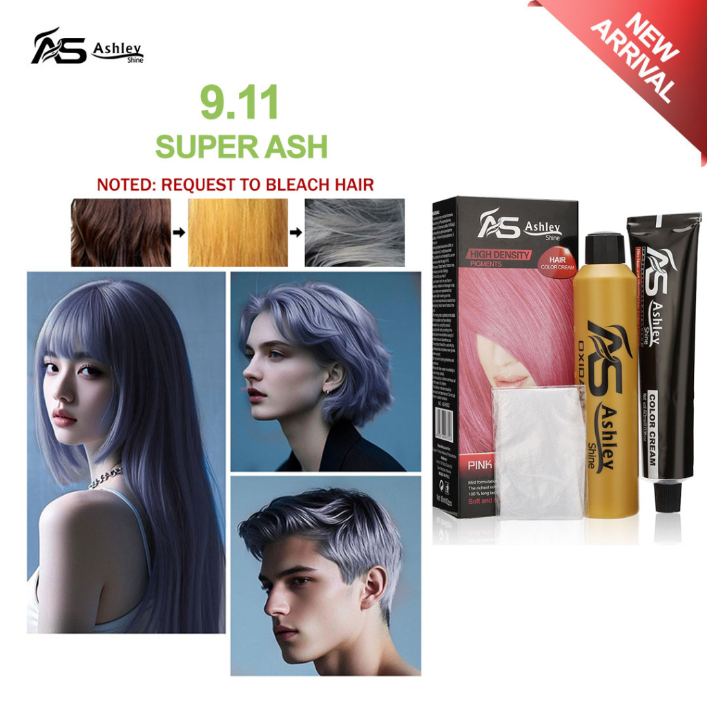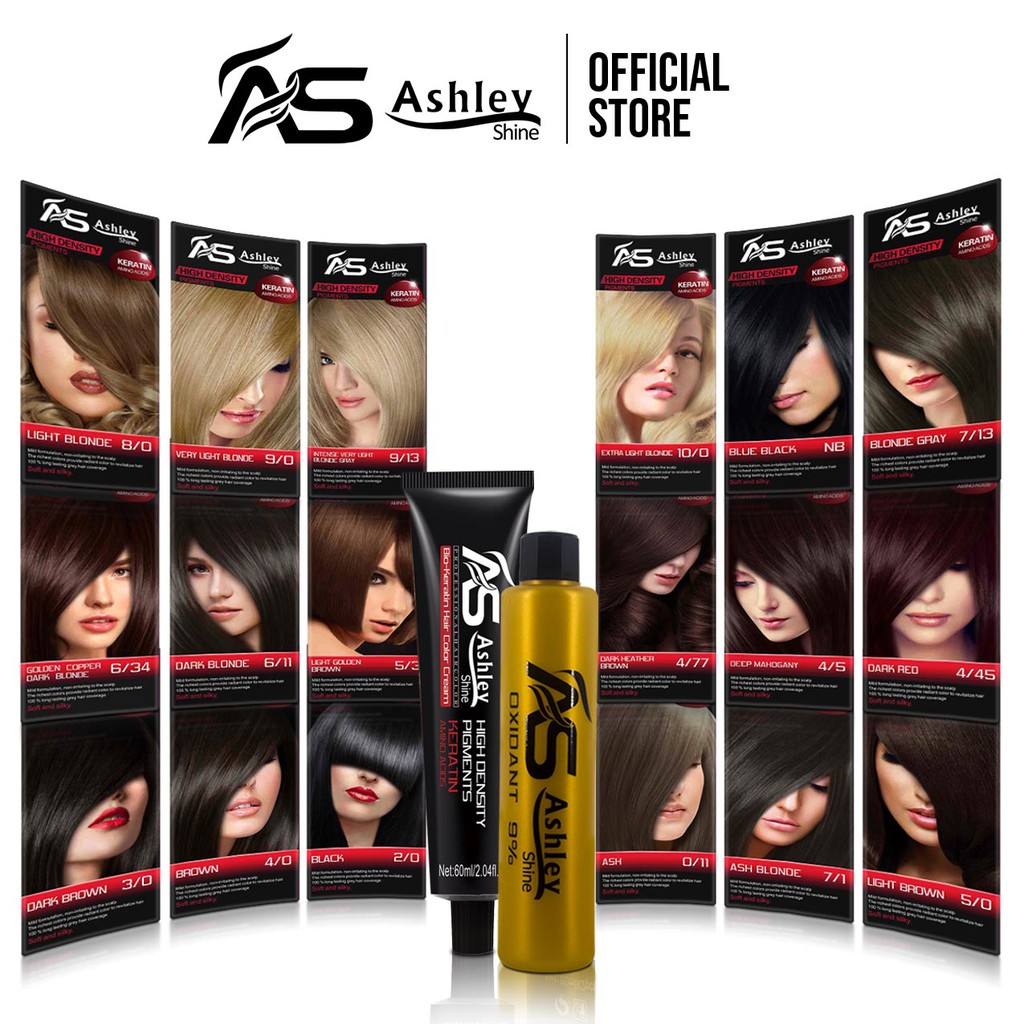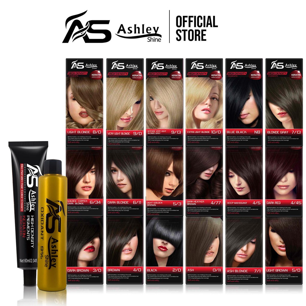 Ashley Shine Hair Color 60ml Bio-Keratin Colors + Oxidizing Cream 60ml Brown Light Blonded Ash Black