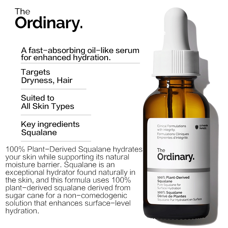 The Ordinary 100% Plant-Derived Squalane Repairing, hydrating, moisturizing skin barrier beauty oil