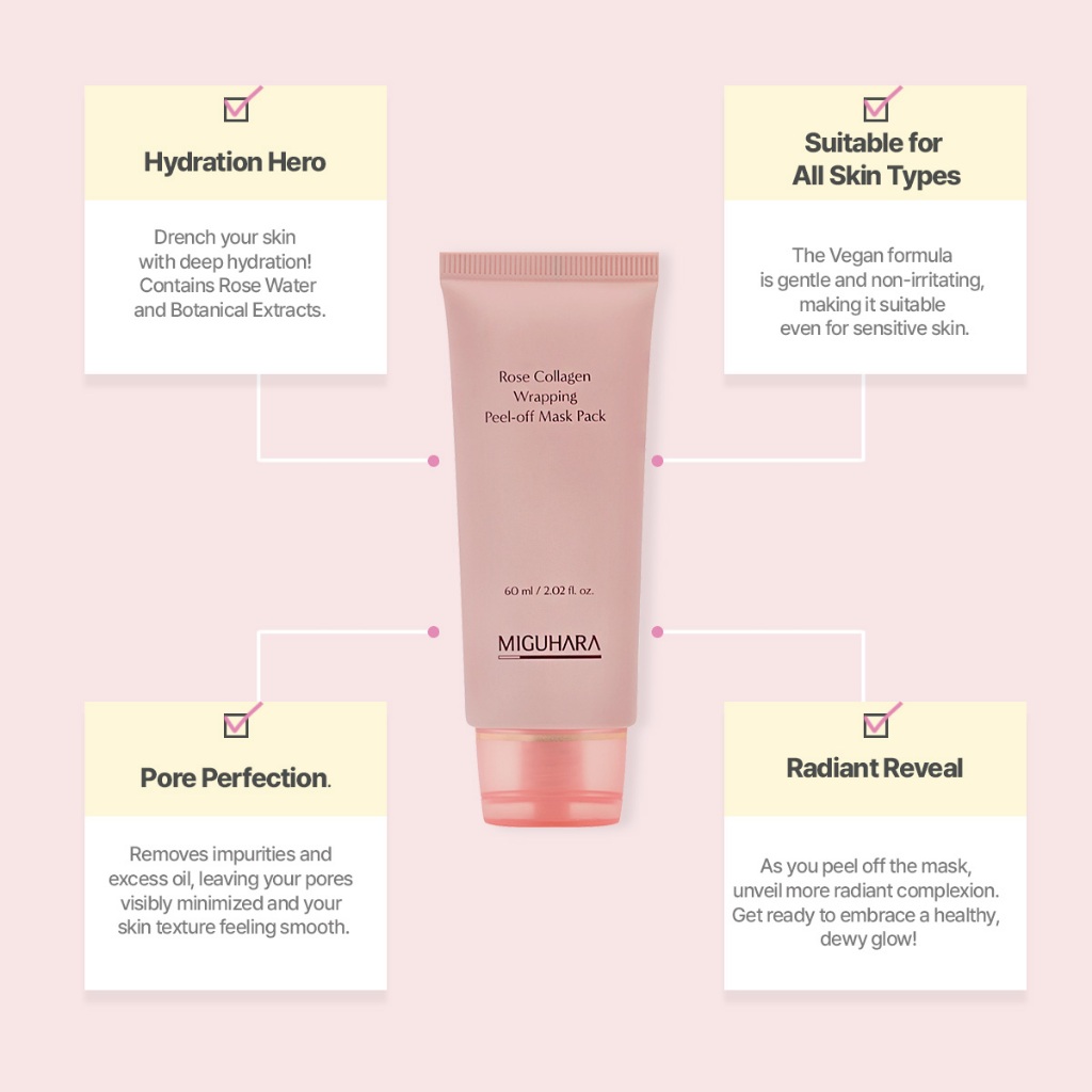 MIGUHARA Rose Collagen Wrapping Peel-off Mask Pack | Korean Skincare Mask Pack (60ml / 2.02 fl.oz.)