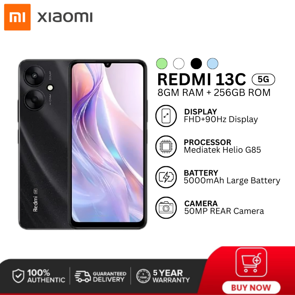 XIAOMI REDMI 13C 5G Cellphone 8GB RAM+256GB ROM | 6.74" 90Hz HD+ Display | 50MP Camera Smartphone