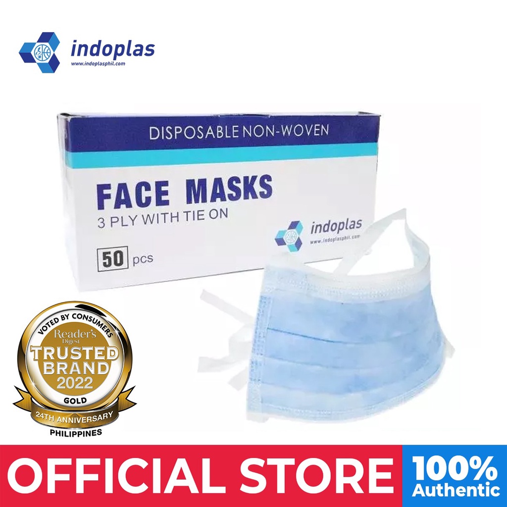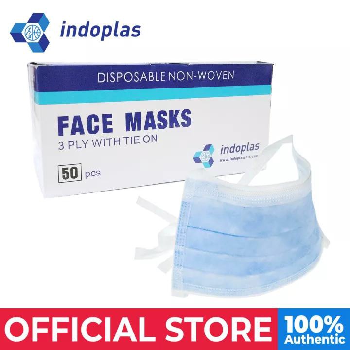 Indoplas Disposable Non-Woven Face Mask 3-ply with Tie-On 1 box (50 pcs)