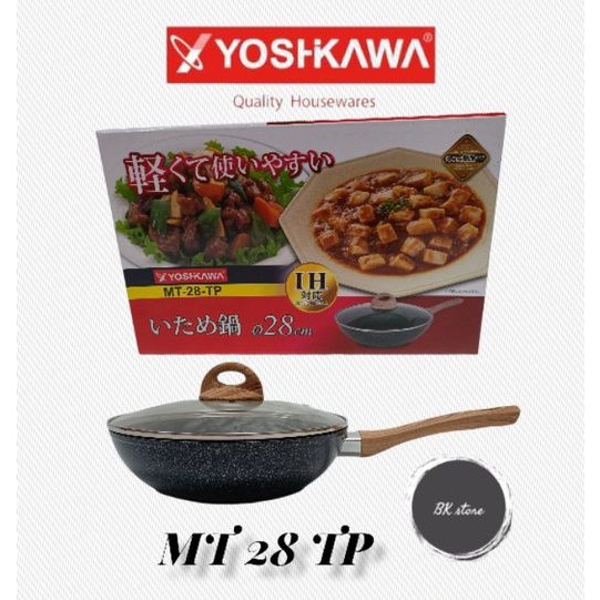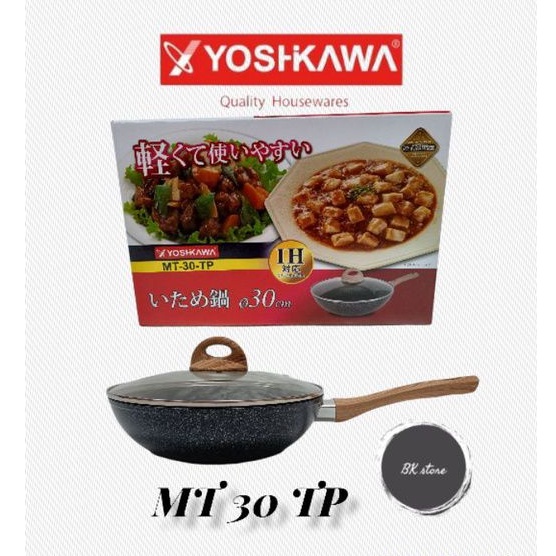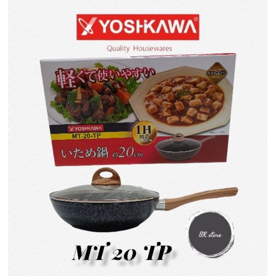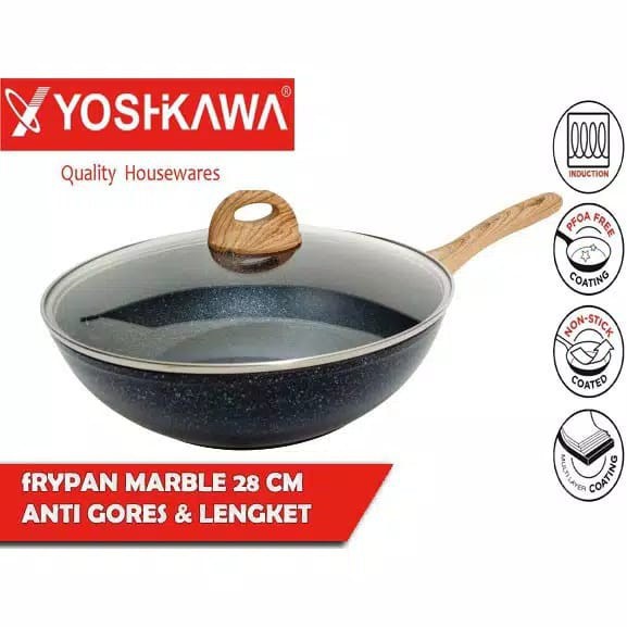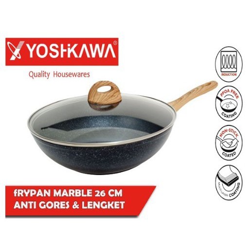 Induction WOK PAN + GLASS LID / YOSHIKAWA MARBLE WOK PAN 20/24/26/28/30 cm