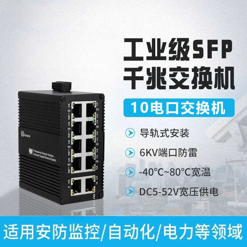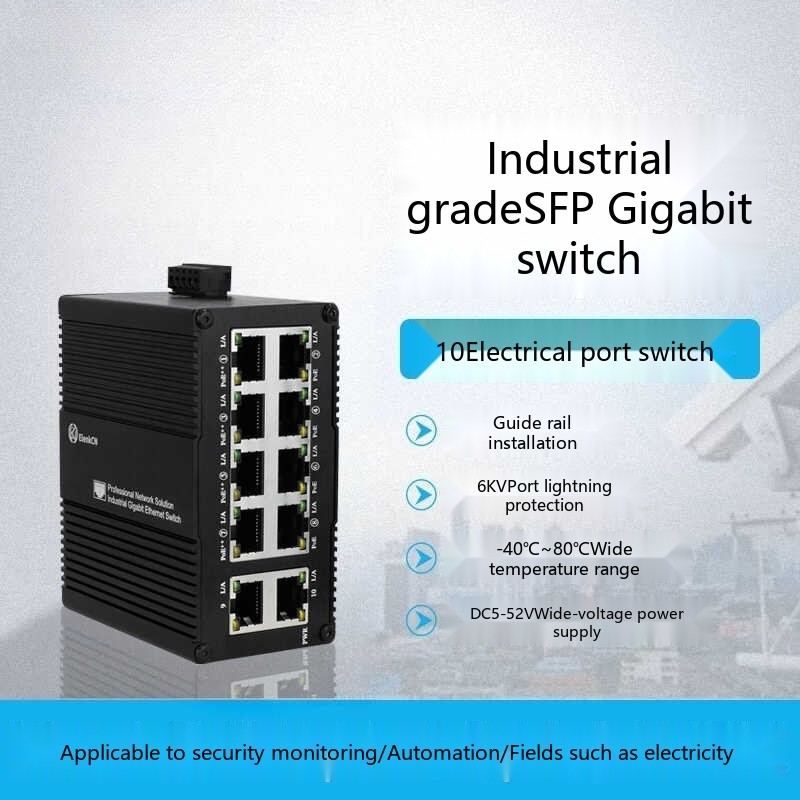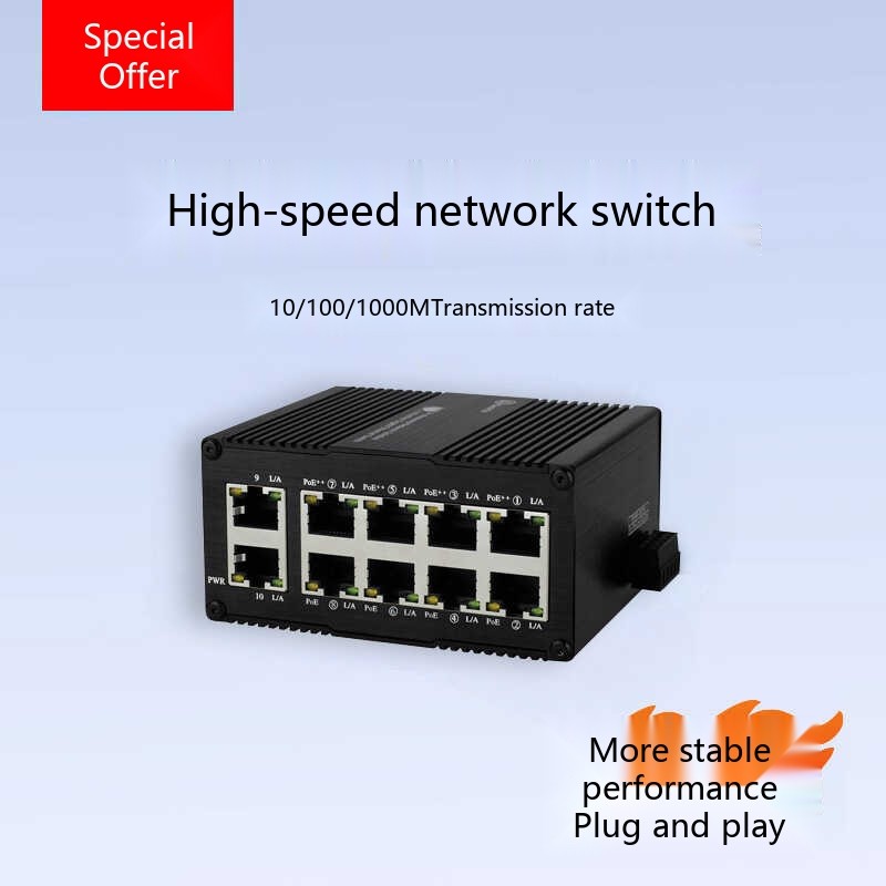 Industrial Grade Gigabit 10 Port DIN Rail Ethernet POE Switch with Optional 4/8/12 Ports