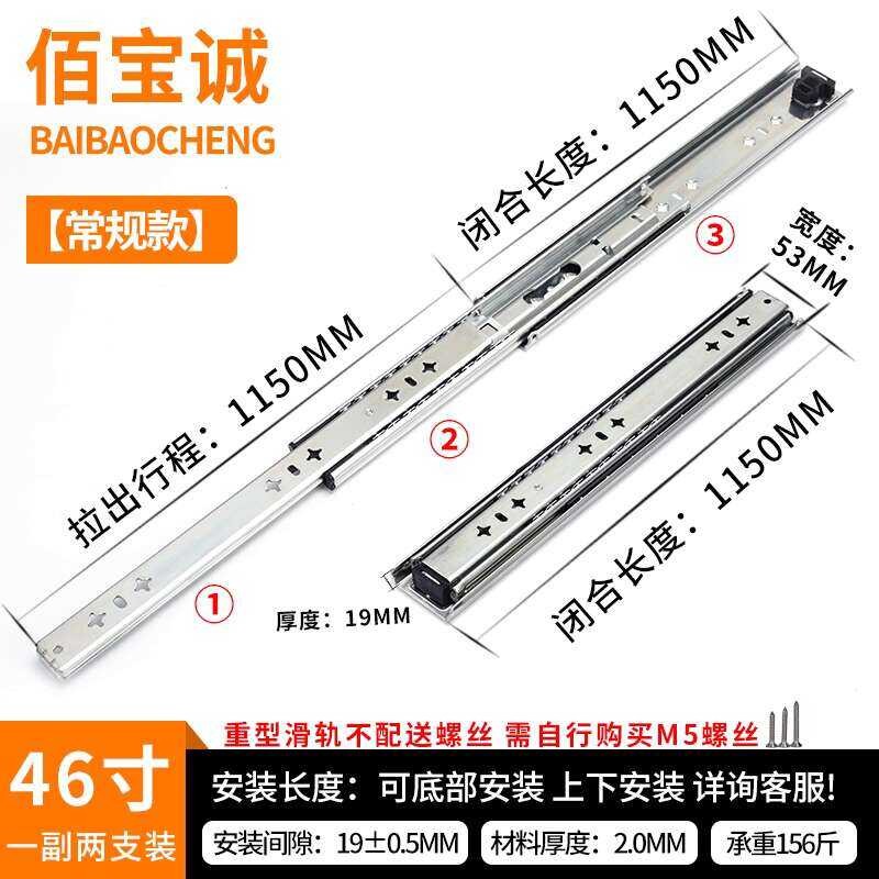Industrial Heavy Duty Sliding Drawer Island Track Three-Section Pull-Out 53 Width RV with Lock Side