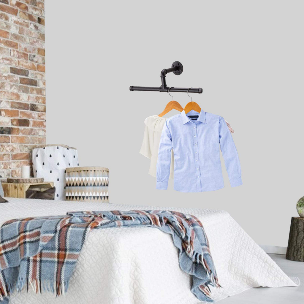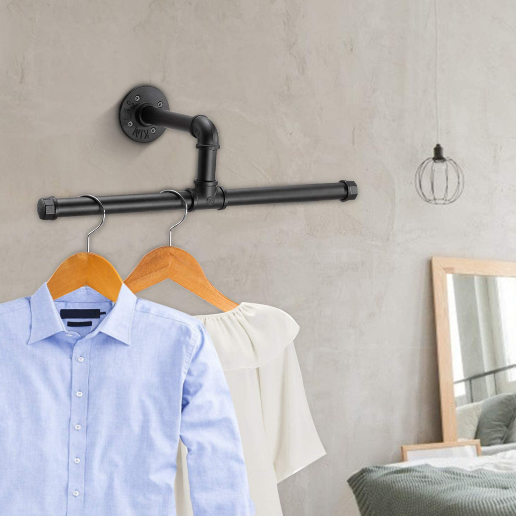 Industrial Pipe Clothing Rack Wall Mounted Cloths Rack Metal Commercial Clothes Racks
