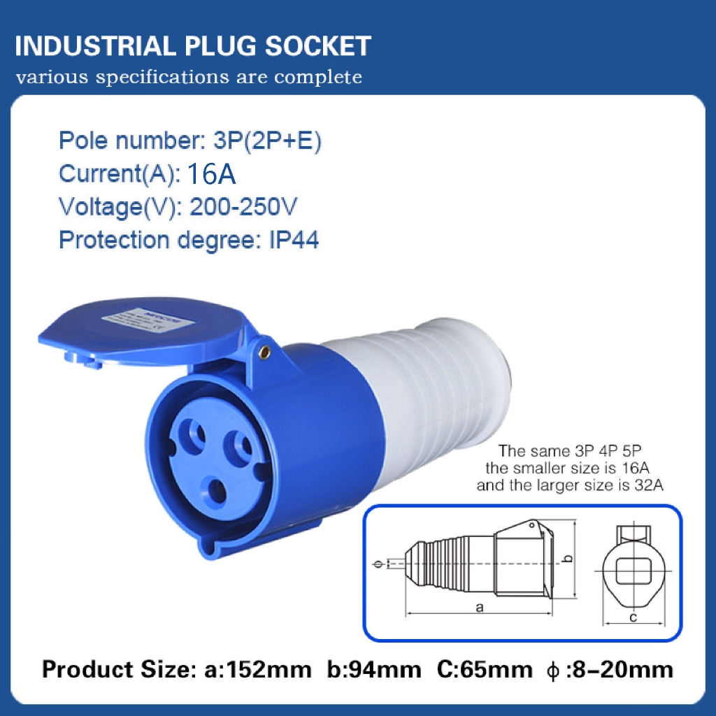 Industrial Plug Socket Connector Three-Phase Electricity 3-Core 4-Core 5-Hole 16A/32A Waterproof