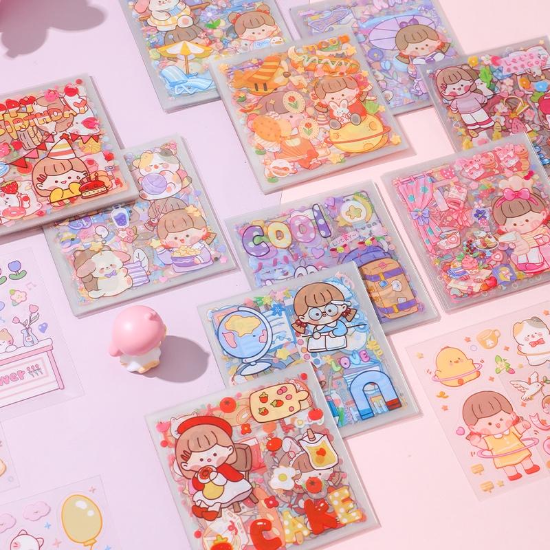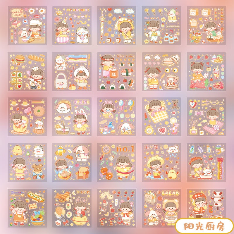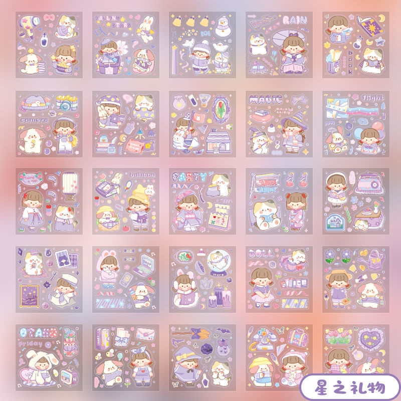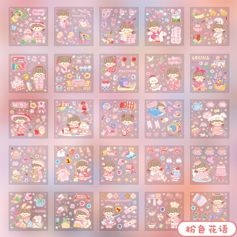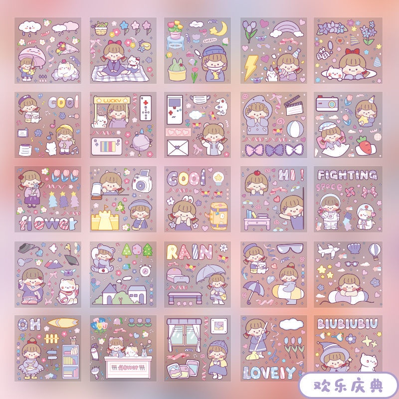 Infeel.me 25sheets Student Scrapbook Stickers Cartoon Decorative Stickers Creative Cute Cartoon PET Waterproof Stickers Gift Bag Sealing Stickers
