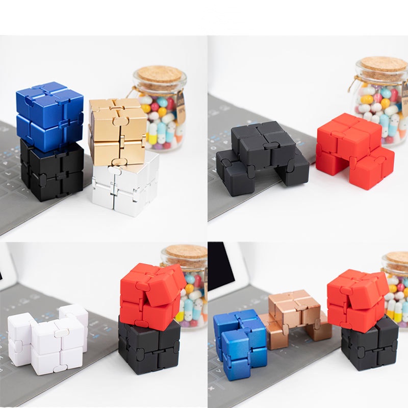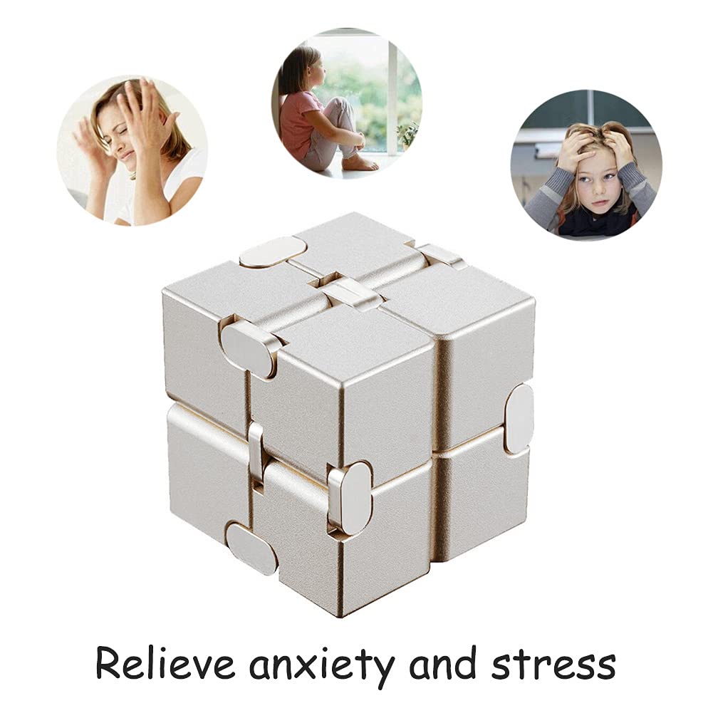 Infinity Cube Fidget Toys Aluminum Alloy Metal Foldable Infinite Magic Cube with Storage Case Mini Stress Anxiety Relief Fidget Blocks Desk