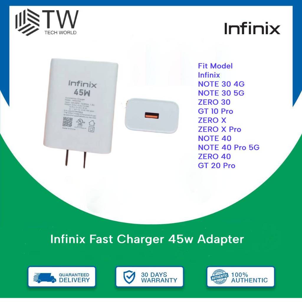 Infinix Fast Charger 45W Adapter For NOTE 30/NOTE 30 5G/ZERO 30/NOTE 40/NOTE 40 Pro 5G/GT 20 Pro