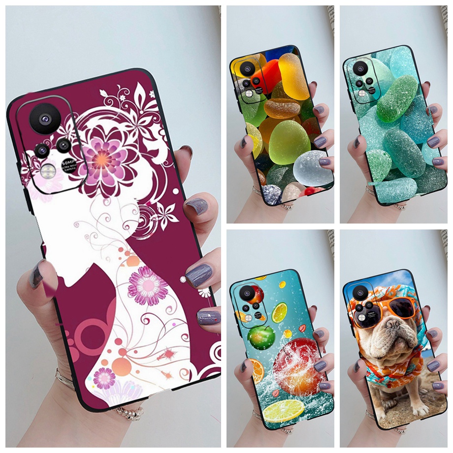Infinix Hot 11s NFC Hot 10 Lite 10 Play 11Play Casing Jelly Candy Color Soft Phone Cover Case Matte Black Luxury INS Painting Pattern Shells